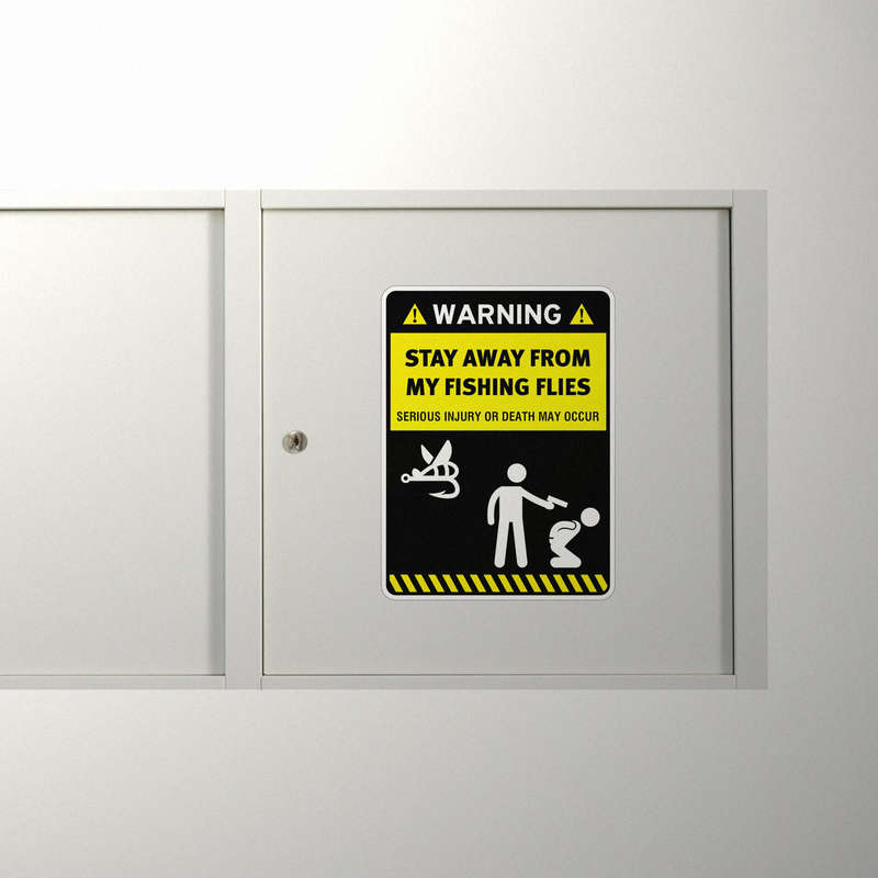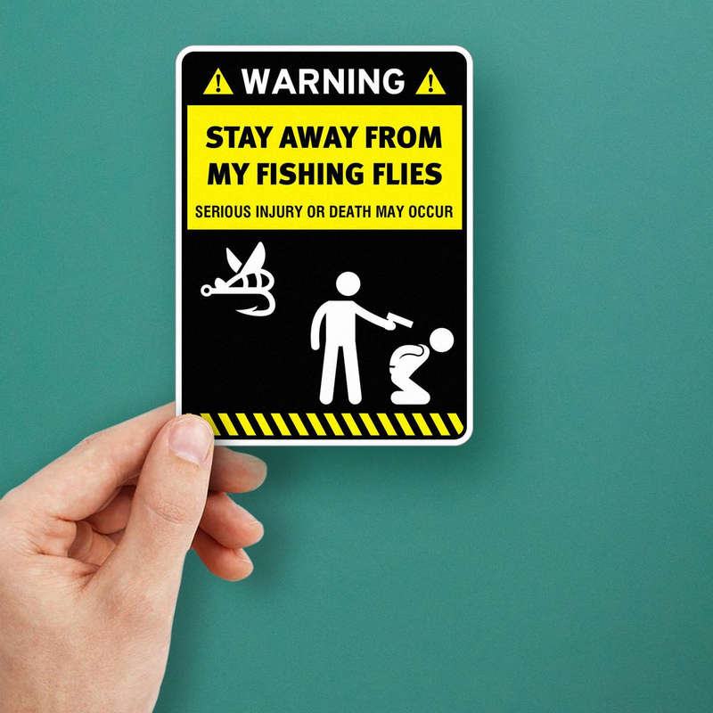 Bring humor and personality to your space with this “Stay Away From My Fishing Flies” warning sign sticker. Featuring a bold black and yellow caution design, this vinyl decal offers a playful twist on traditional warning signs, making it a must-have for fishing enthusiasts. Made from durable, weatherproof vinyl, it is suitable for both indoor and outdoor use, ensuring it remains vivid and intact. Perfect for cars, tackle boxes, garages, or fishing gear, this sticker is easy to apply and remove without leaving residue. Available in multiple sizes, it’s an ideal novelty addition to show off your fishing humor.