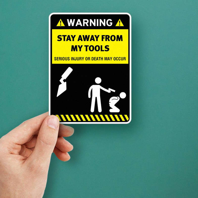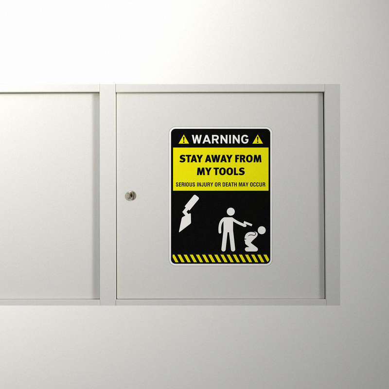 Protect your tools and communicate clear safety messages with this “Warning: Stay Away From My Tools” decal. Featuring bold yellow and black colors with strong text and warning icons, this safety sign ensures visibility and reinforces the importance of maintaining boundaries in workplace environments. Made from durable, waterproof vinyl, it withstands wear and weather, making it suitable for both indoor and outdoor use. Perfect for walls, doors, toolboxes, or equipment, this decal is easy to apply with a bubble-free finish and removes cleanly without residue. Available in multiple sizes, it’s an essential addition to any workspace prioritizing safety and professionalism.