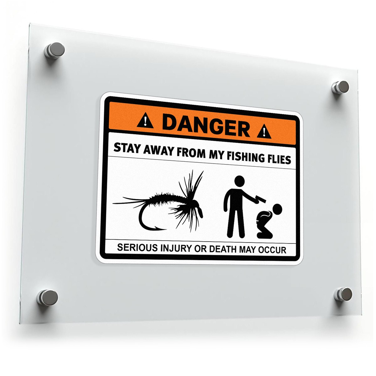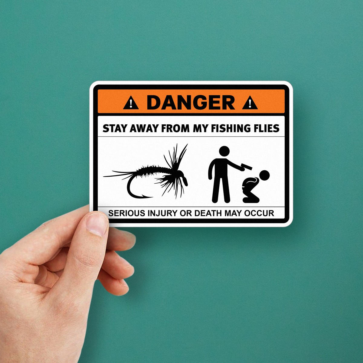 This funny fishing sticker is a must-have for any fisherman who values their gear—and their humor. Featuring a bold warning to “Stay Away from My Fishing Flies,” this vinyl decal is both durable and waterproof, making it perfect for outdoor use on tackle boxes, boats, cars, or other gear. The eye-catching design ensures that it won’t go unnoticed, while its quality construction guarantees long-lasting use. Available in multiple size options, this sticker is the perfect blend of humor and functionality for any fishing enthusiast.