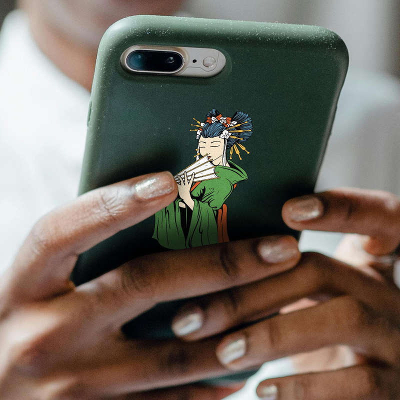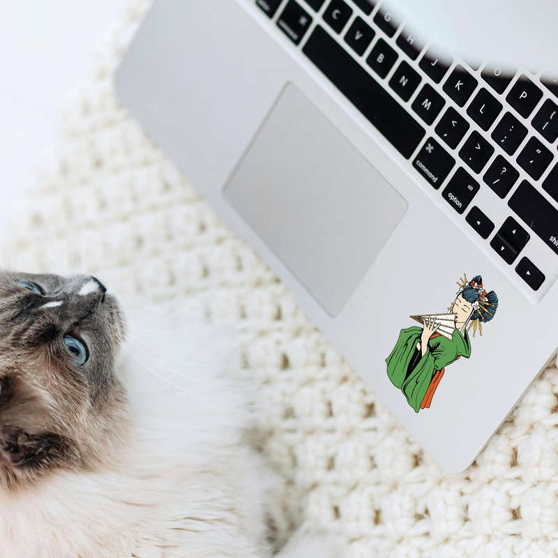 Enhance your accessories with this stunning Geisha fan art sticker, a beautiful tribute to traditional Japanese culture. Depicting a poised Geisha dressed in an elegant green kimono with intricate details, this vinyl decal blends art and sophistication. Made from premium-quality materials, it ensures vivid colors and durability, resisting scratches and fading even with outdoor use. Whether adorning your laptop, water bottle, car, or journal, this sticker is easy to apply and leaves no residue upon removal. Available in multiple sizes, it’s the perfect way to infuse your personal space with timeless Japanese elegance and artistic charm.