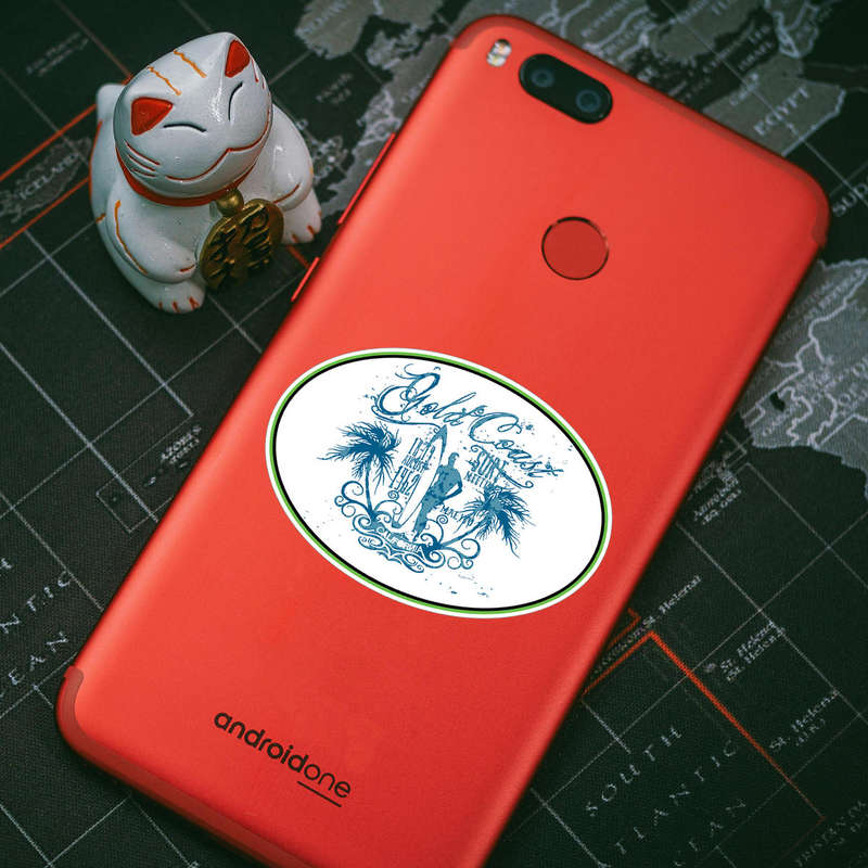 Capture the essence of California’s surf culture with this vintage Gold Coast surf sticker. Featuring a beautifully distressed blue design with a surfboard, palm trees, and elegant script, this oval decal radiates coastal vibes and nostalgia. Perfect for cars, laptops, or travel gear, it’s made from durable, waterproof vinyl that resists fading and peeling, even in outdoor conditions. Easy to apply and remove, this sticker adds a touch of beach-inspired charm to any surface. Whether you’re a surfer, a beach lover, or simply seeking a stylish and versatile decor piece, this sticker embodies the laid-back spirit of the ocean.