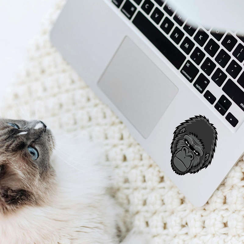 Capture the raw power of the wild with this bold gorilla head sticker, featuring a striking design in gray and black tones. Perfect for laptops, car windows, walls, or any smooth or rugged surface, this durable vinyl decal is both fade-proof and weather-resistant, ensuring long-lasting quality indoors and outdoors. The commanding illustration adds a touch of intensity and sophistication to any space or gear, making it ideal for wildlife enthusiasts or fans of bold, artistic expressions. Easy to apply and remove without residue, it’s available in multiple size options to suit all your decorative needs.