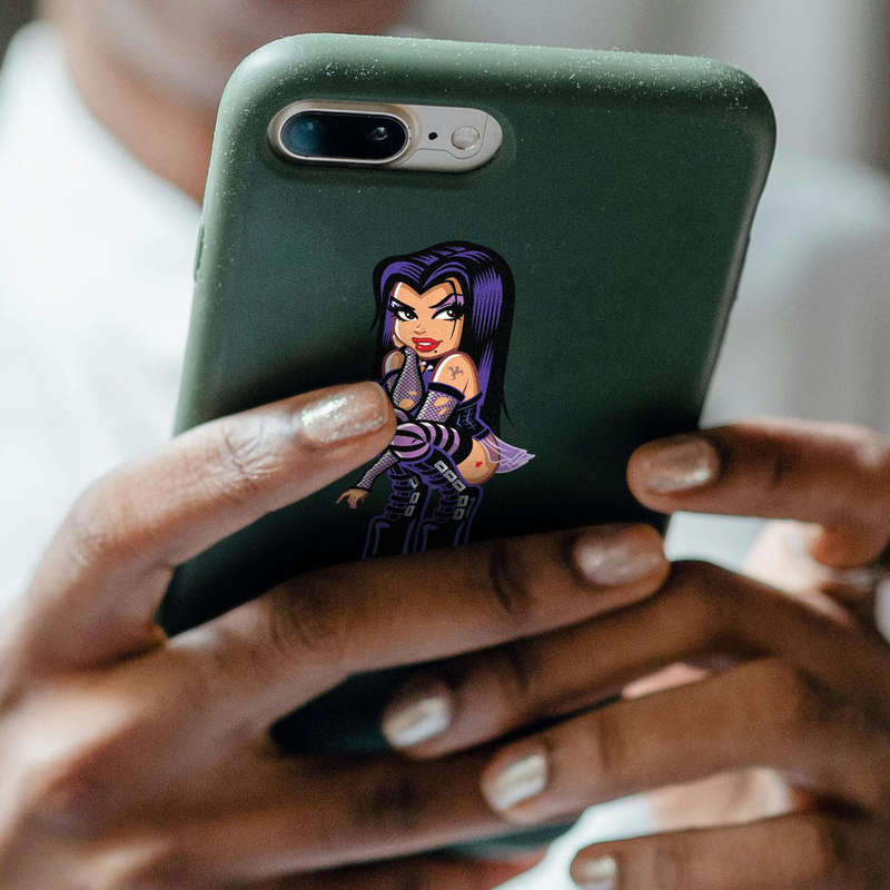 Express your edgy side with this gothic pin-up girl vinyl sticker, showcasing bold purple and black tones with intricate, stylish details. Perfect for fans of alternative fashion and dark art, this decal adds personality to cars, laptops, water bottles, or any smooth surface. Crafted from durable, weatherproof vinyl, it’s designed to resist scratches, water, and fading, ensuring its bold look lasts indoors or outdoors. Easy to apply and remove without residue, this versatile sticker is the perfect way to showcase your unique style. Available in multiple sizes, it’s ideal for adding a rebellious, artistic flair to your favorite items.