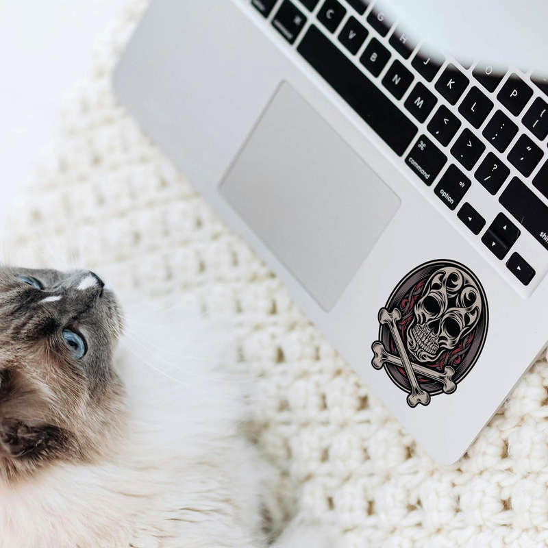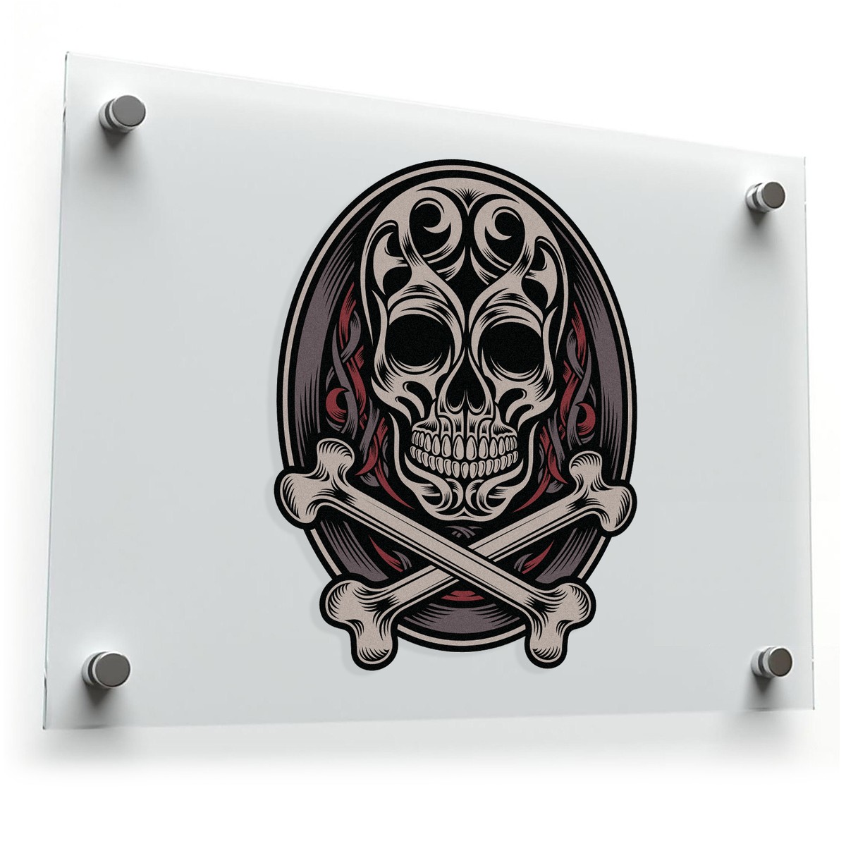 Gothic Skull and Crossbones Sticker 💀 Striking Gothic Design: This skull and crossbones sticker features an intricate design with swirling patterns and dark details, perfect for lovers of gothic art and bold aesthetics. 💀