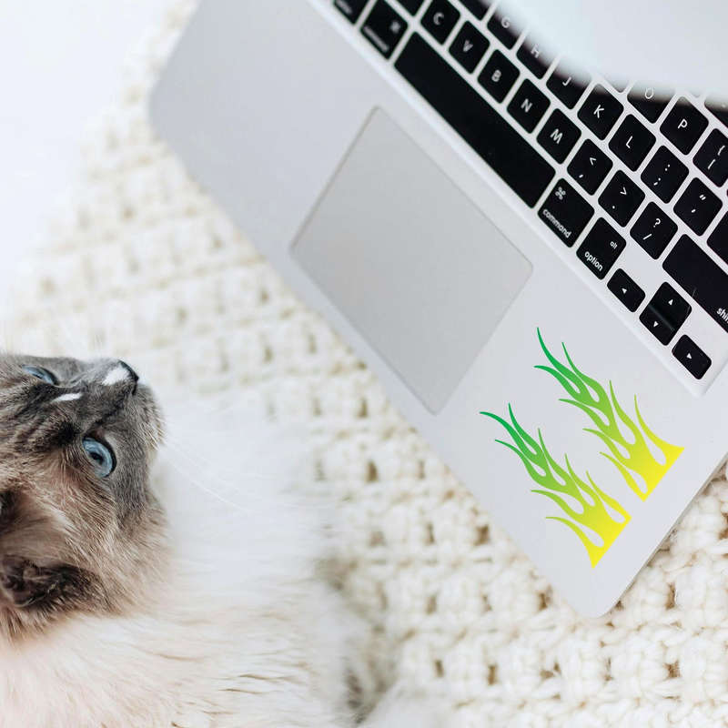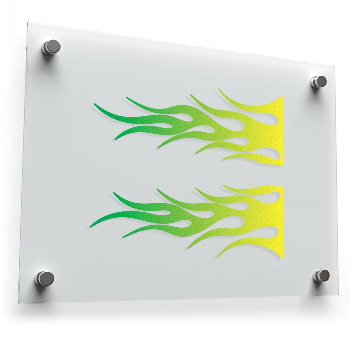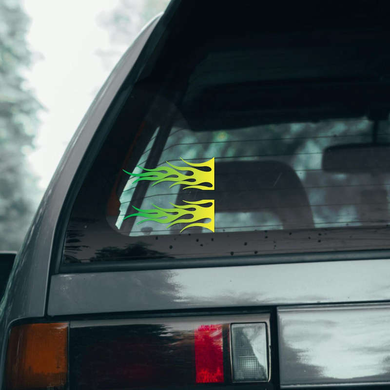 Upgrade your ride with this vibrant green and yellow flame decal set, perfect for cars, motorcycles, boats, and more. Designed with a seamless green-to-yellow gradient, these vinyl stickers create a bold, energetic look that stands out wherever you place them. Made from durable, weatherproof vinyl, they are waterproof, UV-resistant, and fade-proof, ensuring long-lasting performance in outdoor environments. The peel-and-stick design allows for an easy, bubble-free application on smooth surfaces. This 2-piece set offers versatility, whether for symmetrical placement on vehicles or creative customization across multiple accessories. Perfect for adding a dynamic and sporty edge to your gear.