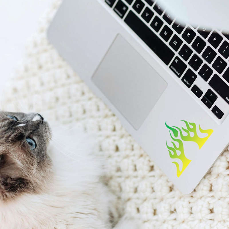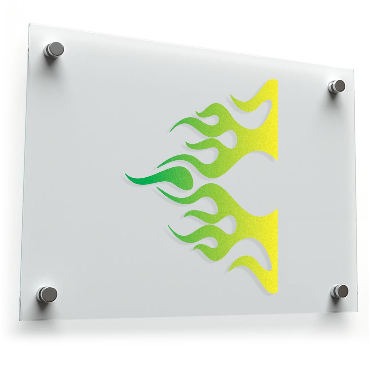 Enhance your gear with this vibrant set of green-to-yellow gradient flame vinyl decals. Featuring a dynamic flame silhouette design, these decals add bold energy and a fiery style to cars, motorcycles, helmets, laptops, and walls. Made from durable, weatherproof vinyl, they are fade-resistant and capable of withstanding outdoor conditions like sun, rain, and dirt. Designed for smooth, bubble-free application and clean, residue-free removal, these decals offer a hassle-free customization experience. Perfect for creating symmetrical flame designs or styling multiple surfaces, this set of two flame decals is available in various sizes to suit your personalization needs.