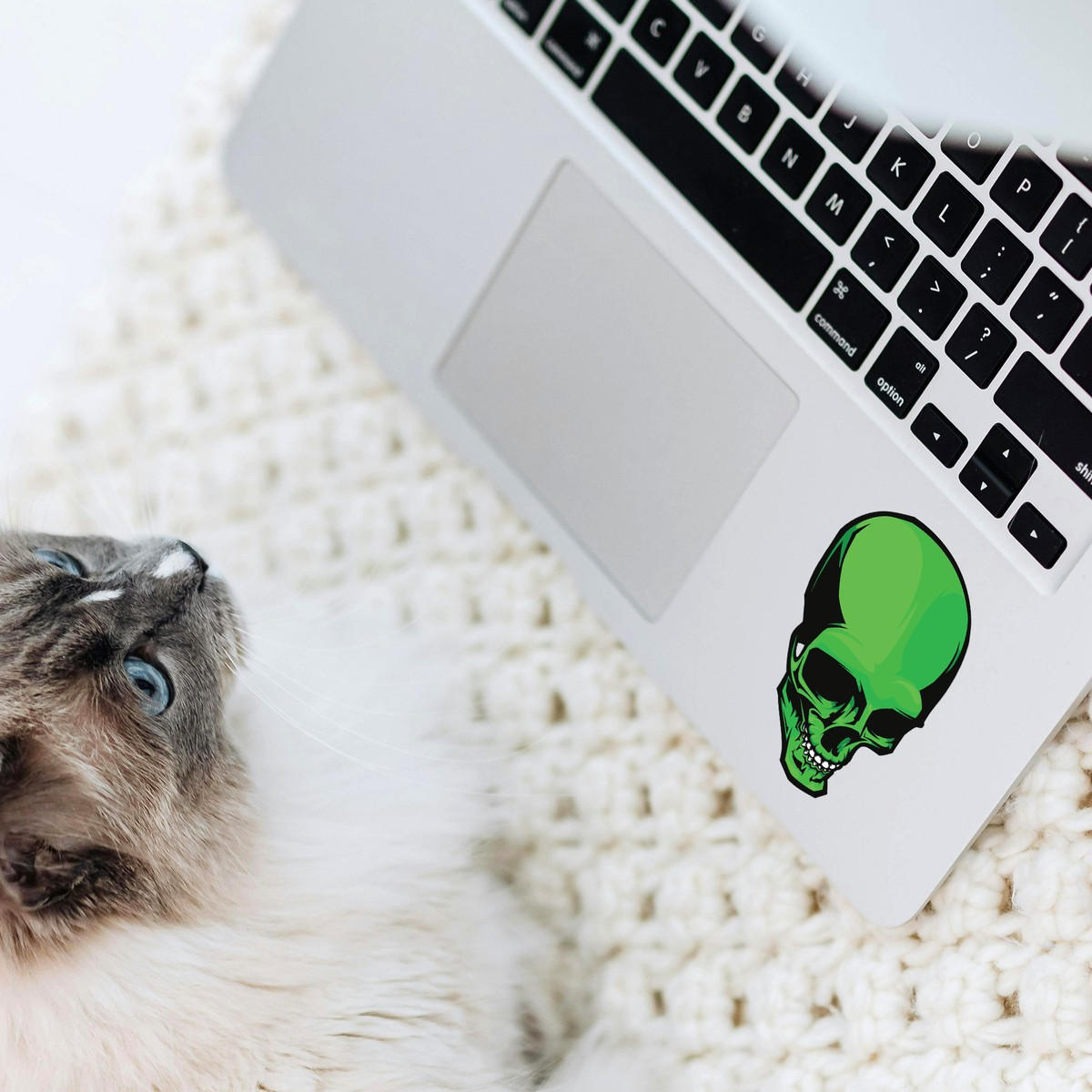 Make a bold statement with this Green Skull sticker, featuring a creepy and detailed design in striking green and black tones. Perfect for laptops, car windows, walls, or toolboxes, this decal is a must-have for horror enthusiasts and fans of edgy decor. Made from high-quality vinyl, it resists fading and weather damage, ensuring long-lasting use both indoors and outdoors. Measuring 5″x7″, it’s the perfect size to make an impact while remaining versatile. With an adhesive backing for easy application and clean removal, this sticker is the ideal way to personalize your belongings with a touch of gothic charm.
