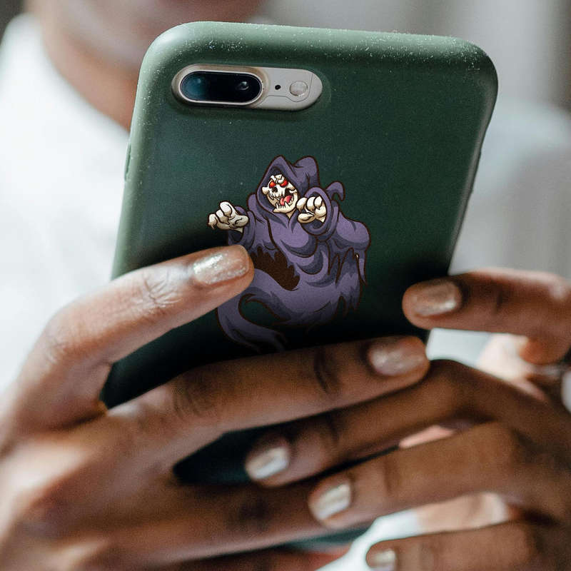 Add a haunting charm to your decor with this grim reaper ghost sticker. Featuring a hooded skeleton with glowing red eyes and tattered robes, this design is perfect for Halloween or gothic enthusiasts. The deep purple tones and eerie expression bring a spooky yet stylish vibe to walls, laptops, or personal collections. Made from high-quality vinyl, it resists fading and peeling, ensuring a long-lasting impression. Easy to apply and remove, this sticker is versatile and ideal for adding a touch of horror to any space. Available in multiple sizes, it’s a must-have for Halloween lovers and gothic decor fans.