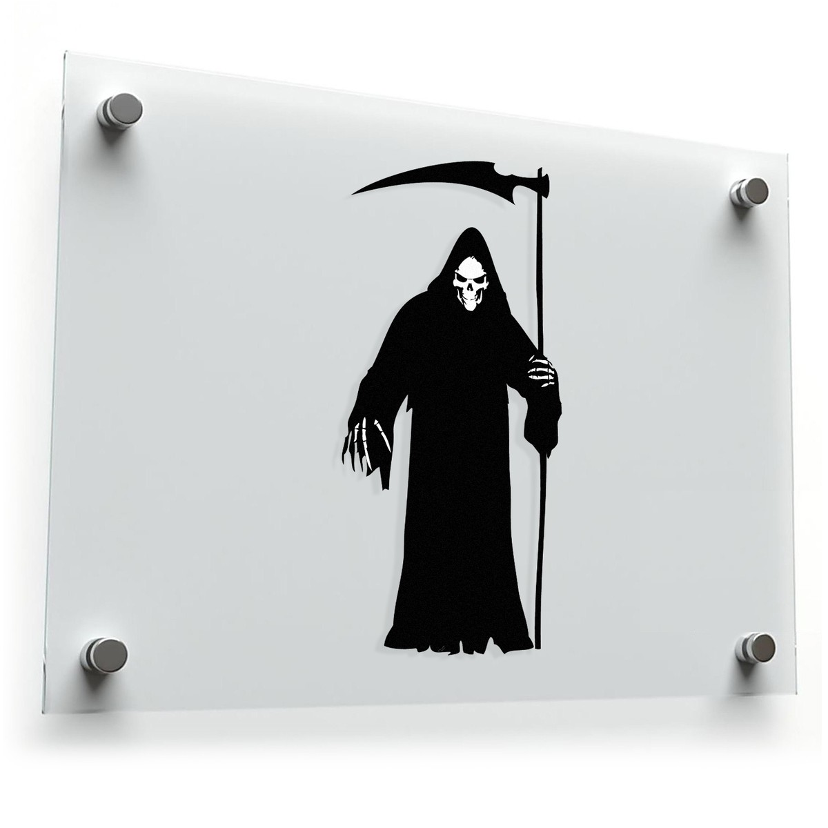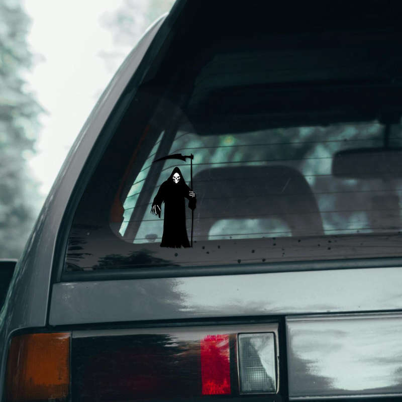 Add a chilling touch to your decor with this Grim Reaper silhouette sticker. Featuring a bold black vinyl design, this durable decal is perfect for fans of gothic aesthetics and horror themes. Its haunting silhouette works seamlessly on cars, laptops, walls, or as a centerpiece for Halloween decorations. Made from premium vinyl, it’s fade-resistant, easy to apply, and simple to remove without leaving a trace. Available in multiple size options, this sticker is a versatile addition to your space, making it ideal for personal use or as a thoughtful gift for the horror enthusiast in your life.