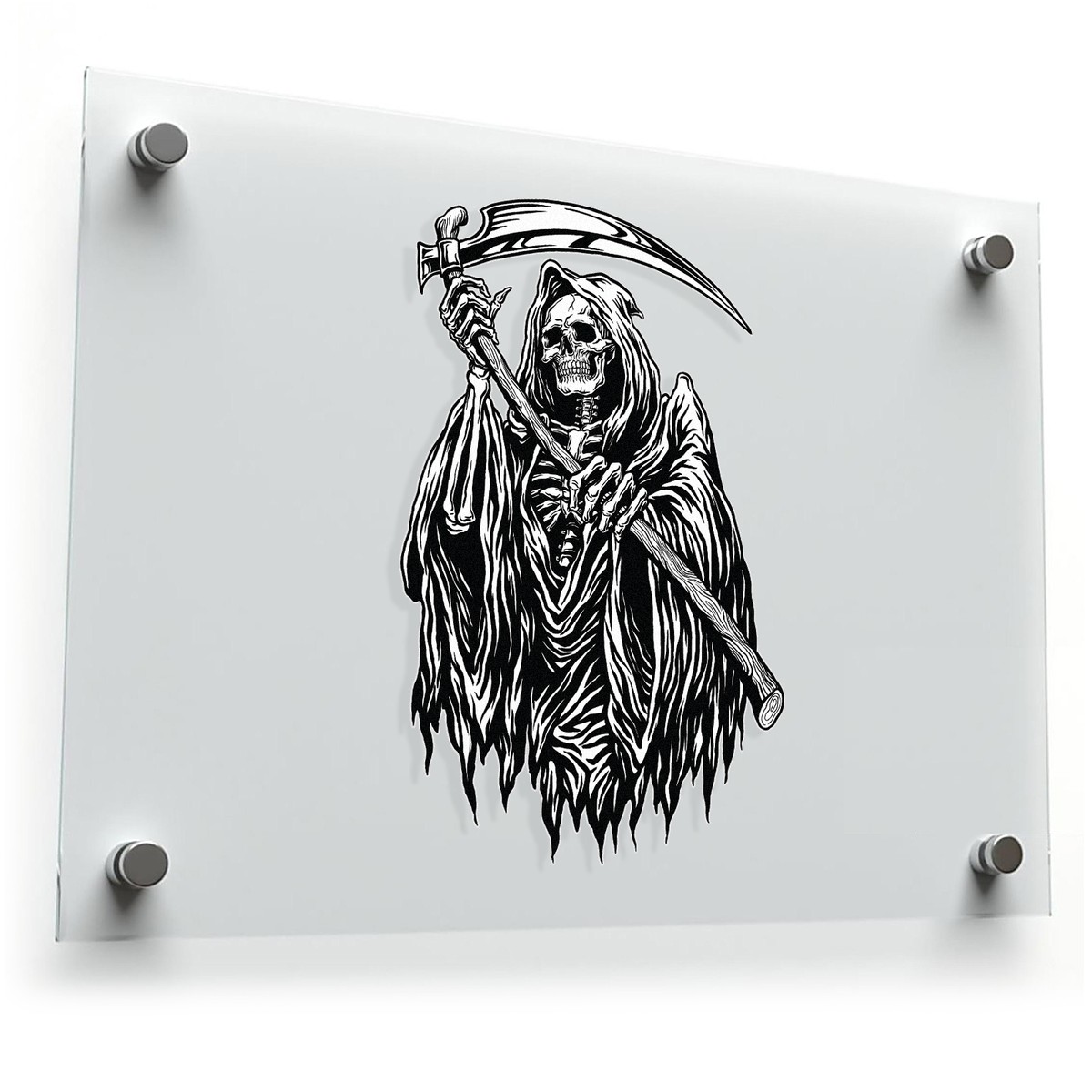 Bring an element of gothic darkness to your personal items with this Grim Reaper Vinyl Sticker, featuring a highly detailed design that evokes the ominous figure of death. Made from durable, weatherproof vinyl, this sticker is designed to withstand outdoor conditions, maintaining its bold, dark aesthetic over time. Easy to apply and remove, it adheres smoothly to cars, bikes, laptops, and more without leaving behind any sticky residue. Whether you’re a fan of gothic art, horror themes, or simply love a striking design, this Grim Reaper decal is the perfect way to personalize your belongings with a touch of dark elegance.