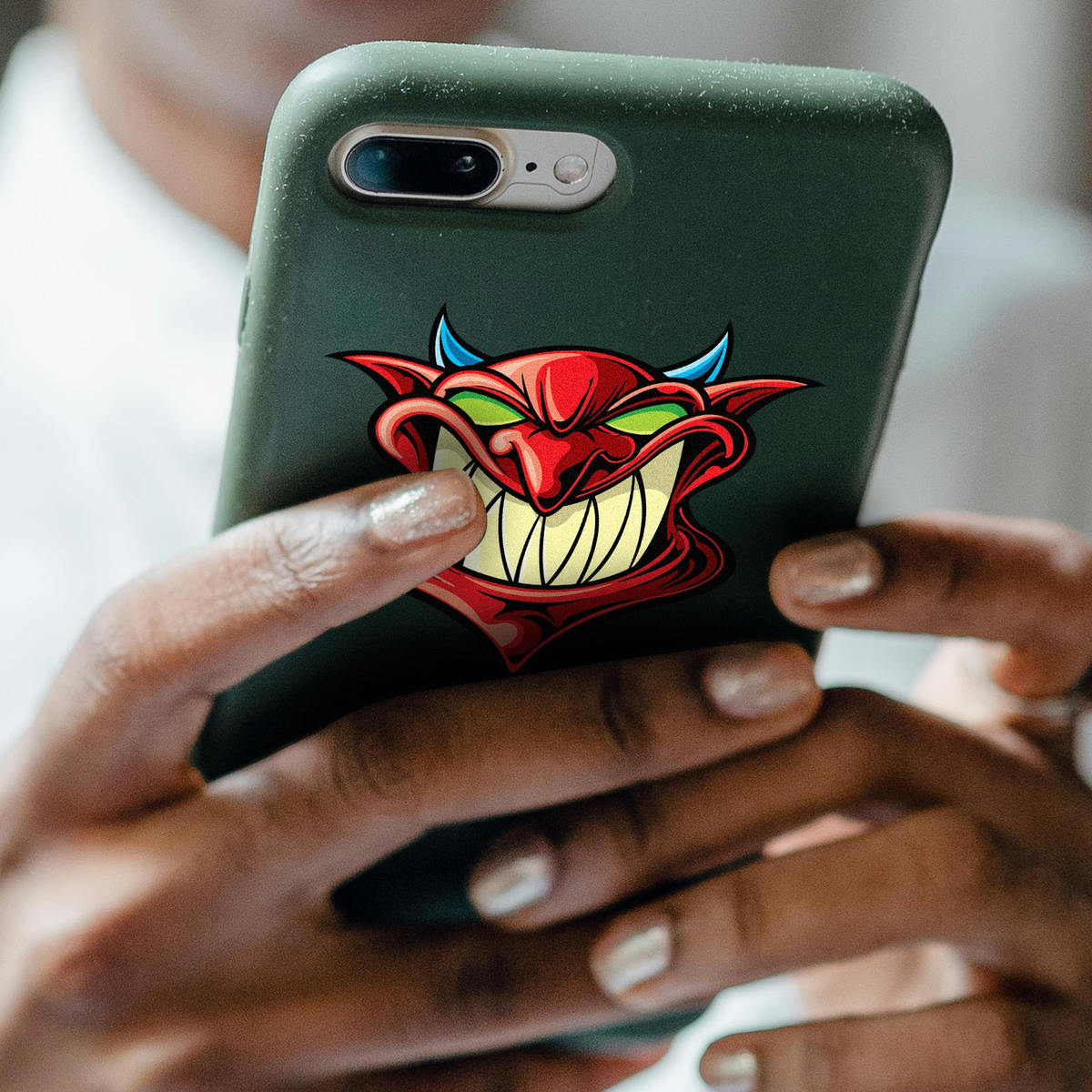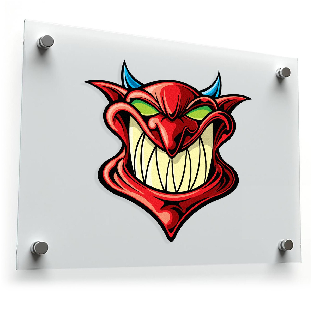 Add a bold and edgy look to your car, laptop, or personal items with this grinning devil head decal. Featuring a striking red and green demon face with an evil grin, this vinyl sticker is perfect for those who love unique and daring designs. Made from durable, weather-resistant vinyl, it can handle both indoor and outdoor elements while maintaining its vibrant color. Easy to apply and remove, this decal sticks smoothly to most surfaces without leaving residue behind. Available in multiple size options, it’s an ideal way to showcase your personality and style.