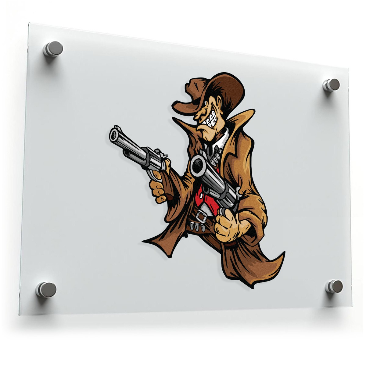 Unleash the spirit of the Wild West with the Gritty Gunslinger Sticker, a striking vinyl decal showcasing a bold cowboy armed with dual pistols in detailed brown and red tones. This versatile sticker is perfect for cars, laptops, or walls, adding a rugged, adventurous touch to any surface. Designed for both indoor and outdoor use, the weather-resistant vinyl ensures long-lasting durability and vibrant colors. Its easy application and residue-free removal make it an excellent choice for renters or temporary decoration. Available in multiple sizes, this decal lets you personalize your space or belongings with a timeless Western flair.