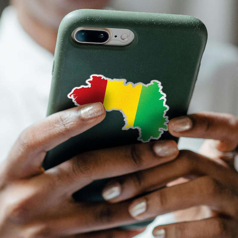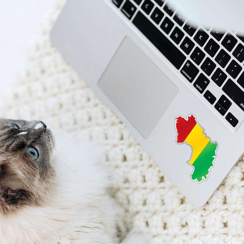Guinea Map Flag Sticker 🌍 Patriotic Guinea Design: Featuring the map of Guinea with vibrant red, yellow, and green flag colors, this sticker is a great way to showcase your national pride. 🌍