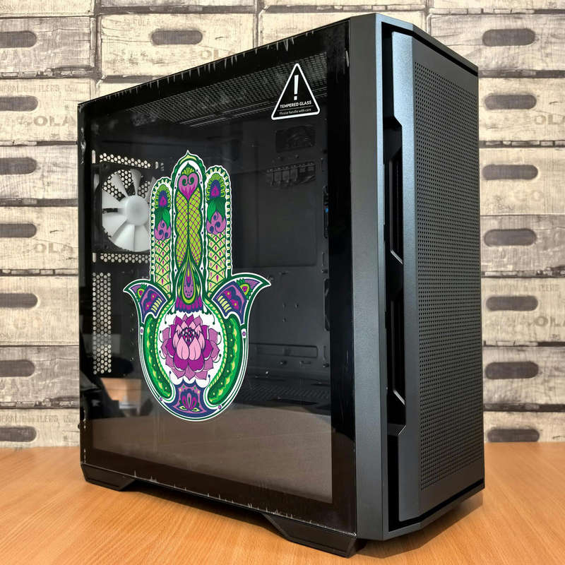 Hamsa Hand Sticker 🖐️ Vibrant Hamsa Design: Featuring an intricate Hamsa hand with a stunning lotus flower centerpiece, this decal brings a touch of spirituality and artistic beauty to any space. 🖐️