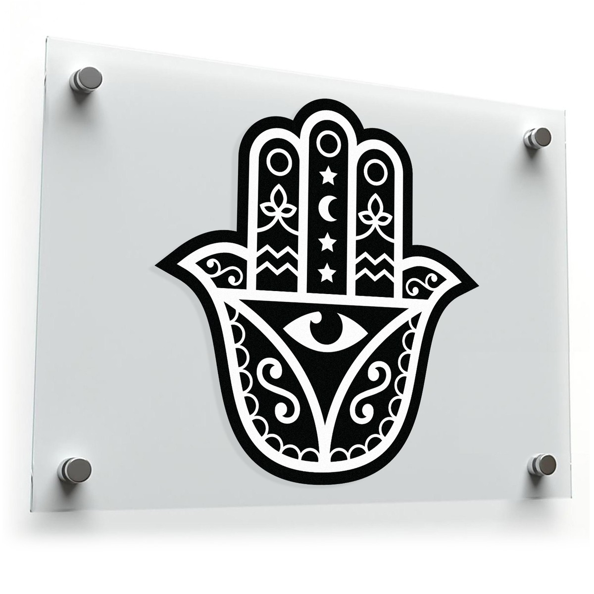 Bring mystical charm and positive energy into your life with this Hamsa hand sticker. Featuring a bold black and white design with intricate details like an eye, moon, and stars, this decal symbolizes protection and spiritual balance. Perfect for adding boho or sacred vibes to your laptop, journal, or personal belongings, it blends elegance with meaning. Made from durable materials, it resists fading and peeling, ensuring long-lasting use. Easy to apply and remove without residue, this versatile sticker is ideal for both temporary and permanent decor projects. Available in multiple size options, it’s a perfect addition for those seeking beauty and symbolism.
