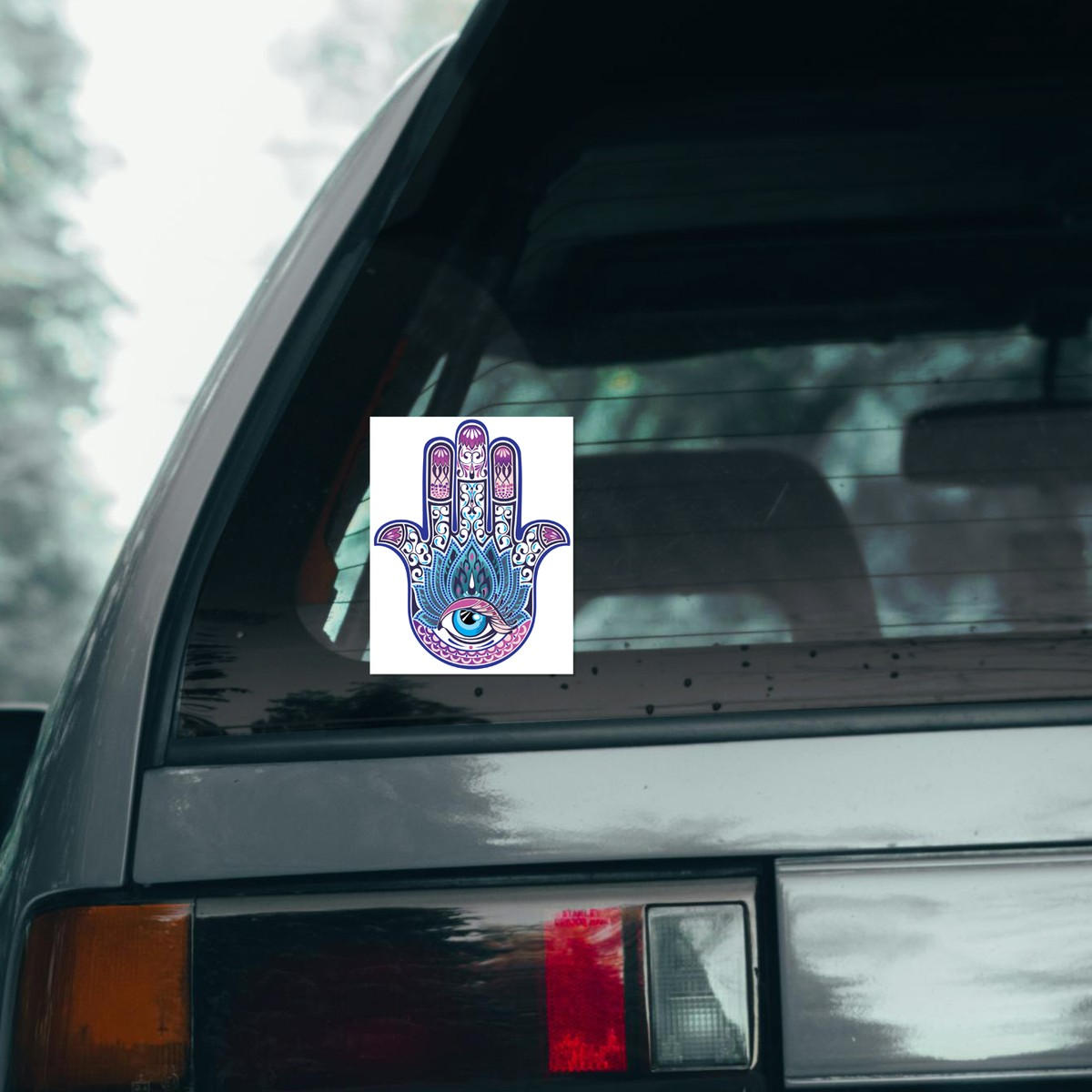 🌈 Colorful and Detailed: Featuring vivid colors and intricate patterns, this Hamsa hand decal is a stunning representation of spiritual symbolism that stands out wherever you place it. 🌈