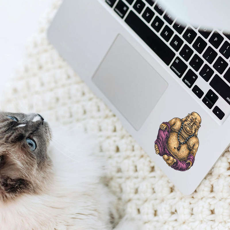 Happy Buddha Sticker 🙏 Embrace Positive Energy: This sticker showcases a joyful Buddha figure, symbolizing happiness, prosperity, and positivity, perfect for creating a peaceful vibe in any space. 🙏