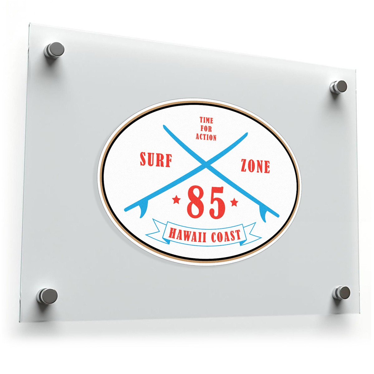 Capture the essence of beach life with this retro Hawaii Coast Surf Zone sticker. Designed with crossed surfboards, a bold “85,” and a stylish “Hawaii Coast” banner, it exudes vintage surf vibes. The vibrant red, blue, and white colors make it pop, while the durable vinyl material ensures it remains waterproof, UV-resistant, and fade-proof for outdoor use. Perfect for decorating surfboards, cars, coolers, or any gear, this sticker is easy to apply and leaves no sticky residue upon removal. Celebrate your love for the ocean or gift it to a fellow surfer—it’s the perfect accessory for beach enthusiasts. Available in multiple sizes to suit your style.