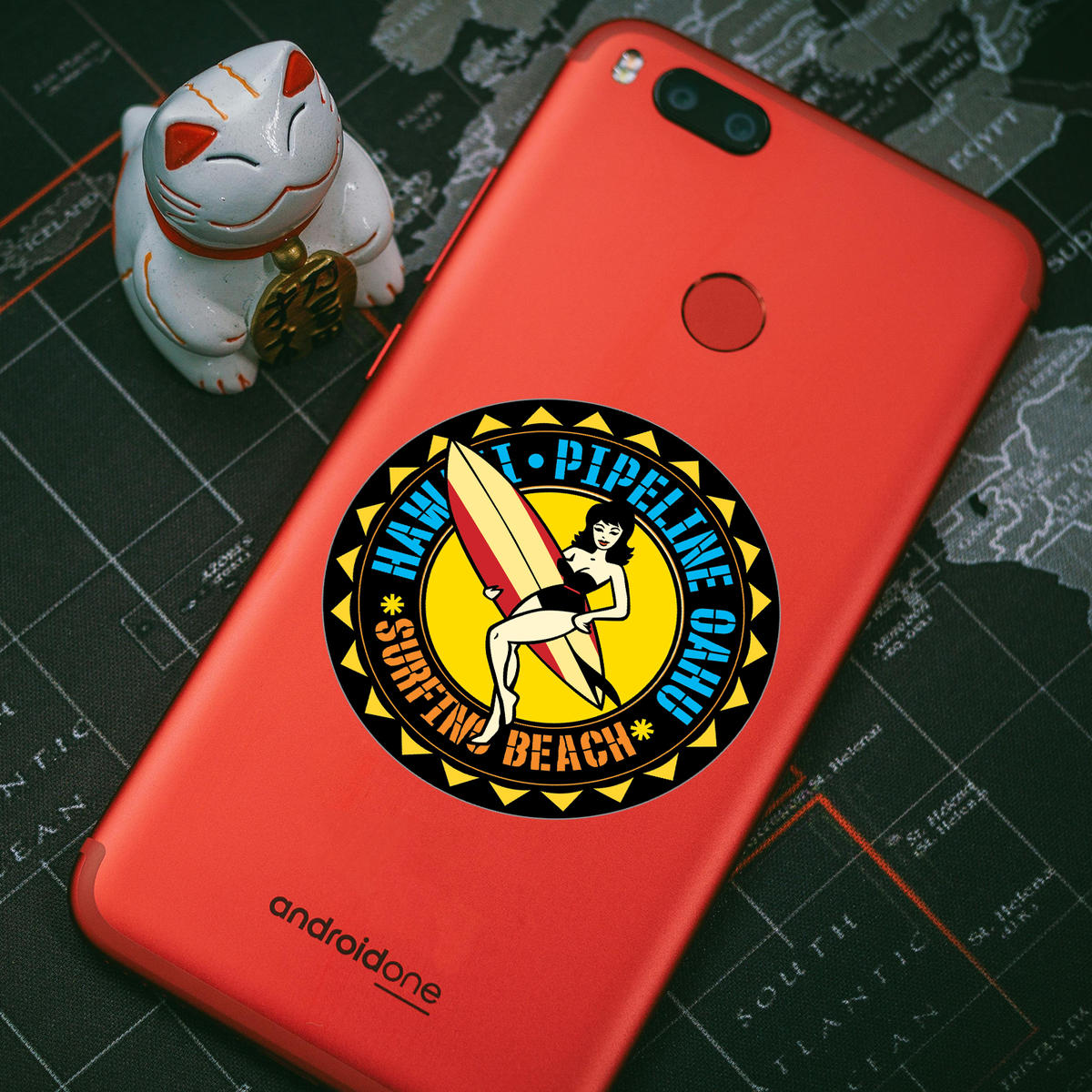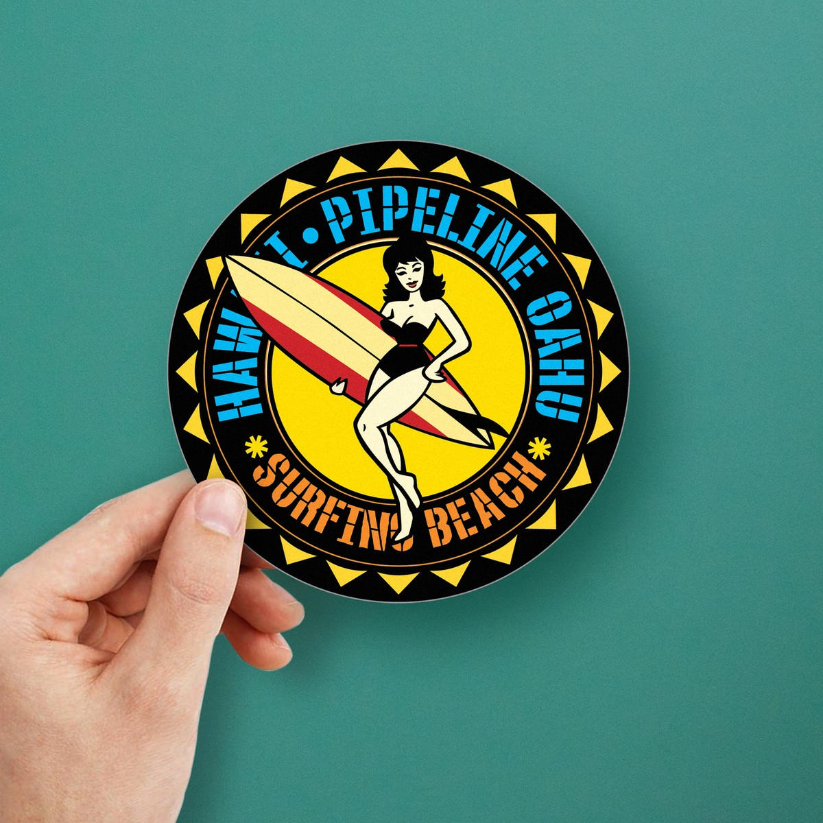 Capture the essence of Hawaii’s Pipeline Beach with this retro surf girl vinyl sticker. Perfect for surf enthusiasts, beach lovers, and travelers, this sticker features a vintage surf girl holding a classic surfboard against a bold, tropical background. Made from durable, weather-resistant vinyl, this decal is perfect for both indoor and outdoor use, whether on your car, laptop, or travel gear. Easy to apply and remove without leaving residue, this sticker is a stylish and versatile way to showcase your love for surfing and the beach lifestyle. Available in multiple size options, it’s the perfect addition to your collection.