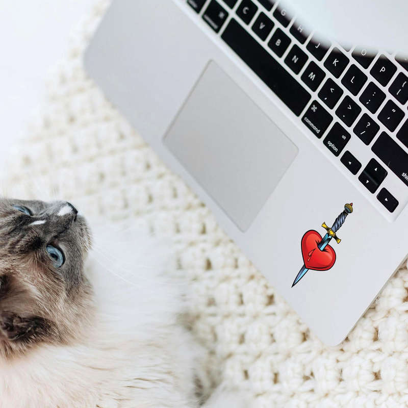 Add an edgy yet meaningful touch to your belongings with this Heart and Dagger Sticker. Featuring a vibrant red heart pierced by a sleek silver blade, this tattoo-inspired vinyl decal offers bold symbolism and artistic flair. Made from durable, waterproof vinyl, it resists scratches and retains its vivid colors, ensuring long-lasting appeal. Ideal for laptops, notebooks, water bottles, and more, this sticker is available in multiple size options to perfectly suit your needs. Its easy peel-and-stick application makes personalization effortless, while its clean removal ensures no damage to your surfaces. Elevate your style with this striking design that speaks volumes.