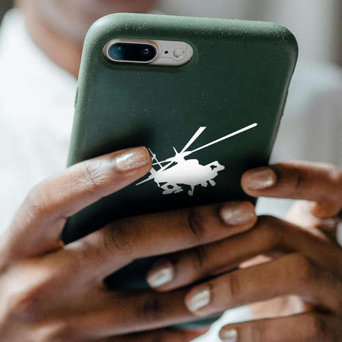 Helicopter Silhouette Sticker 🚁 Dynamic Helicopter Silhouette Design: Featuring a bold black silhouette of a helicopter, this sticker adds a touch of adventure and power to any surface, perfect for aviation enthusiasts and military aficionados. 🚁