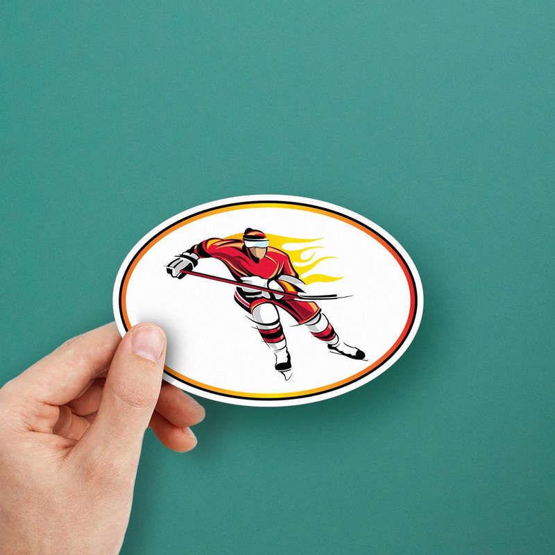 Show off your passion for hockey with this dynamic sticker featuring a powerful ice-skating player in a fiery red and yellow design. Crafted from high-quality vinyl, this durable decal is both weatherproof and fade-resistant, making it perfect for use on cars, laptops, water bottles, and more. Its peel-and-stick design ensures effortless application and removal, leaving no residue behind. Whether you’re a player, a fan, or just love bold sports-themed designs, this sticker is a must-have addition to your collection. Available in multiple size options, it’s the perfect gift for hockey enthusiasts of all ages.