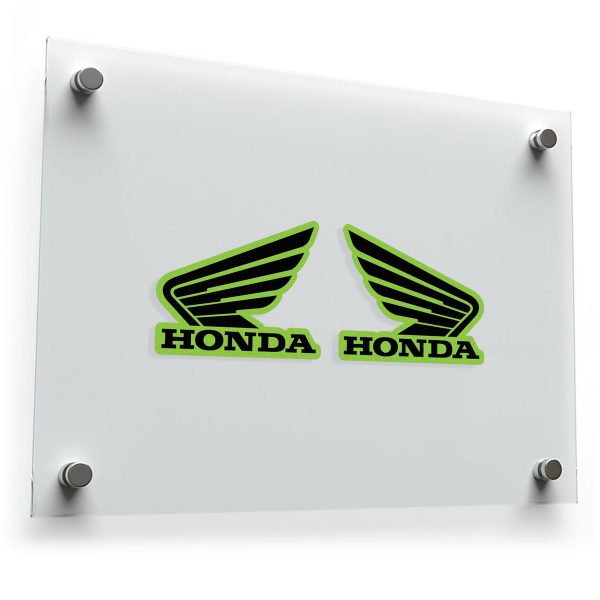 Showcase your Honda pride with this premium Honda wing logo sticker set, featuring a striking black and green design. These high-quality vinyl decals are durable, weatherproof, and fade-resistant, making them perfect for motorcycles, cars, helmets, toolboxes, and more. The smooth, bubble-free application and residue-free removal make it easy to personalize your gear without the mess. With a set of two matching stickers, you get added flexibility to decorate multiple surfaces or share with fellow enthusiasts. Available in various sizes, these Honda wing decals are the perfect accessory for fans of the iconic brand.