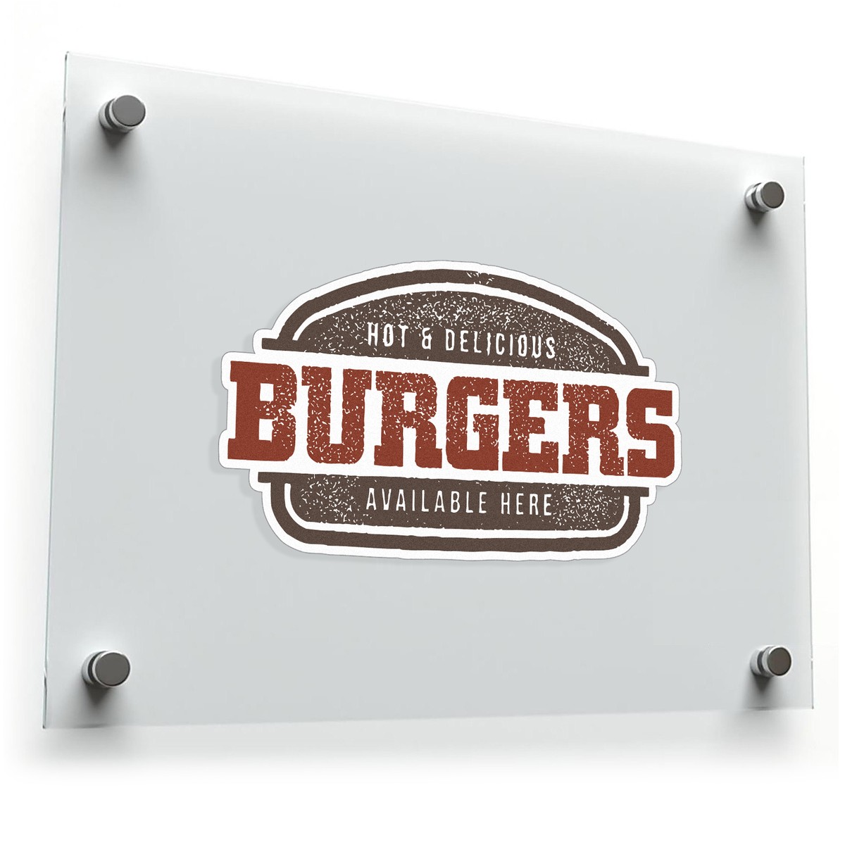 Hot & Delicious Burgers Sticker 🍔 Classic Rustic Design: Featuring bold “Hot & Delicious Burgers” text in vintage brown and red tones, this sticker adds a charming touch to restaurants, food trucks, or burger lovers’ personal spaces. 🍔