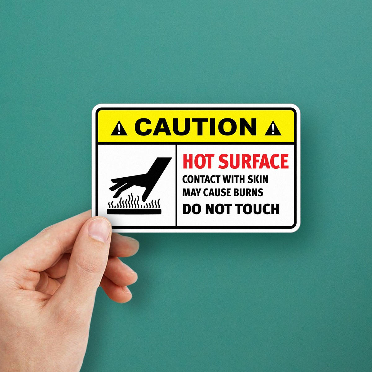 🌟 Highly Visible Design: Featuring bold yellow, red, and black colors with clear icons, this hot surface caution decal grabs attention and clearly warns of burn hazards in the area. 🌟
