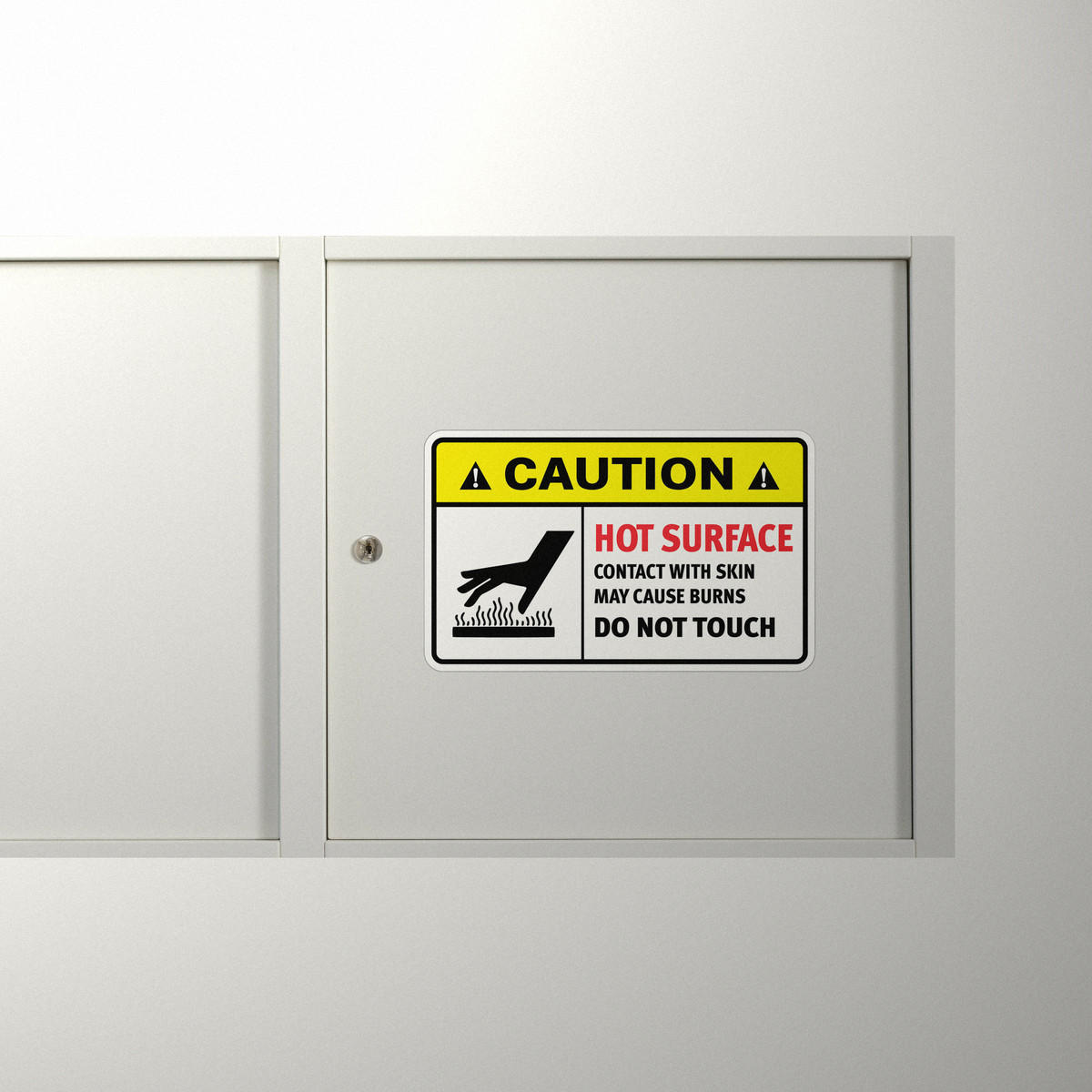 Safeguard your workplace from burn hazards with this hot surface warning vinyl decal. Designed for high-heat surfaces, it uses bold colors and clear icons for maximum visibility. Made from durable vinyl, it withstands both indoor and outdoor conditions. The peel-and-stick application allows for fast installation and clean removal. This decal provides an effective warning on walls, machinery, or equipment to prevent burns and injuries in industrial or commercial settings.