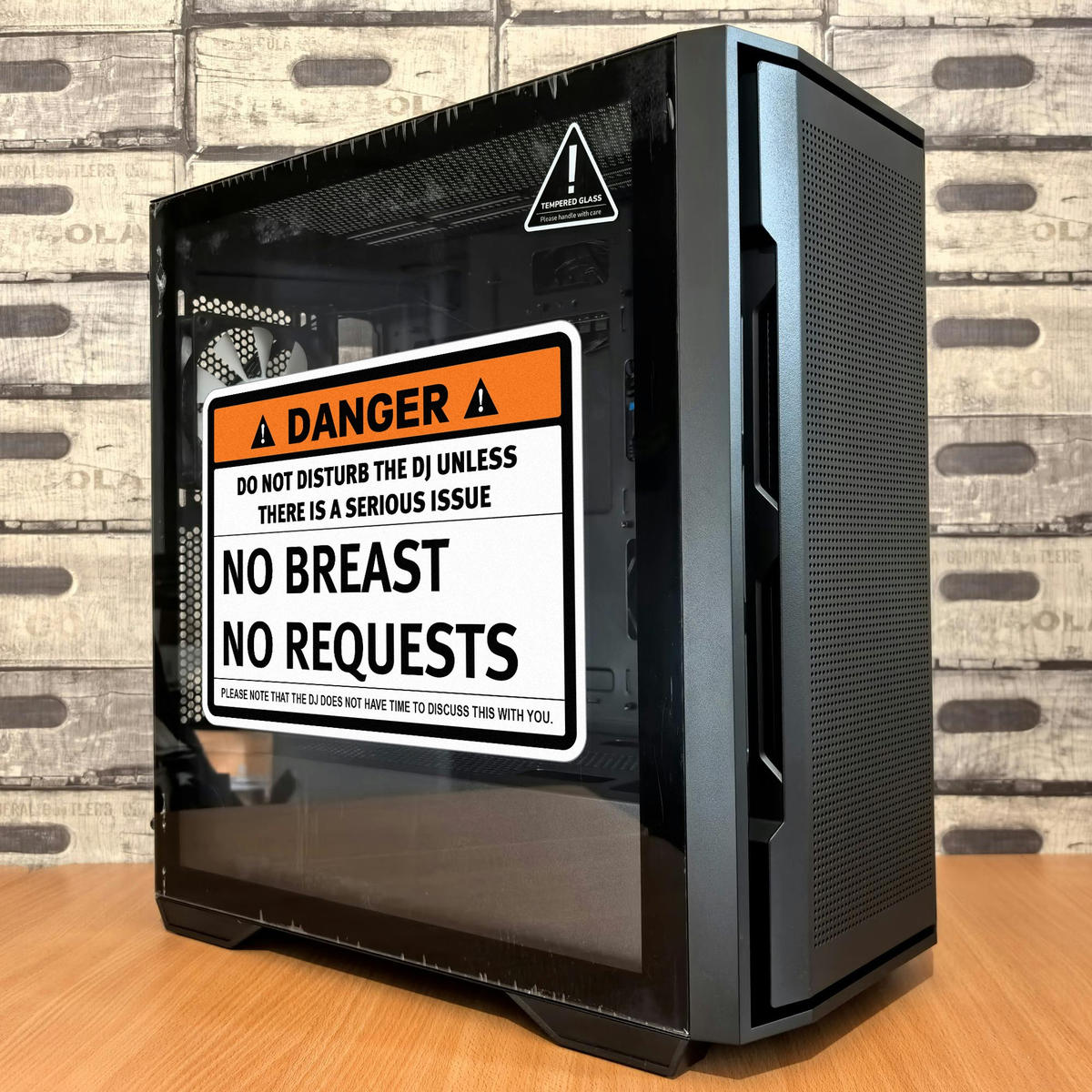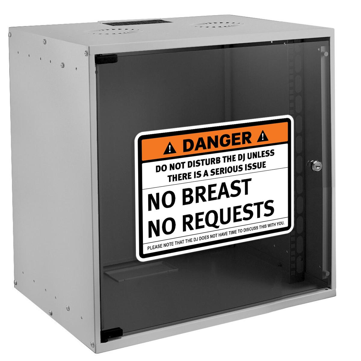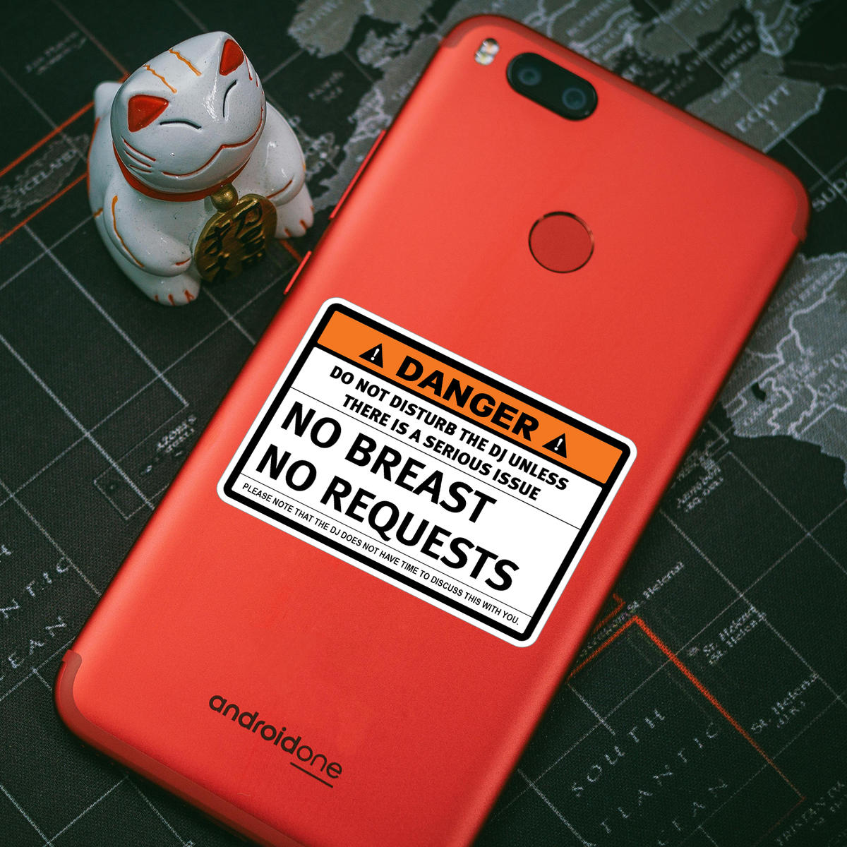 Add a touch of humor to your DJ setup with this bold “No Breast, No Requests” warning sign. Crafted from durable, waterproof vinyl, this sticker is ideal for DJ booths, parties, and music events. Its clear, eye-catching design ensures the message is seen by everyone, keeping unwanted song requests at bay. Easy to apply and remove without leaving any sticky residue, this humorous DJ sign offers flexibility for both short-term and long-term use. Available in multiple sizes to suit your event or party needs.