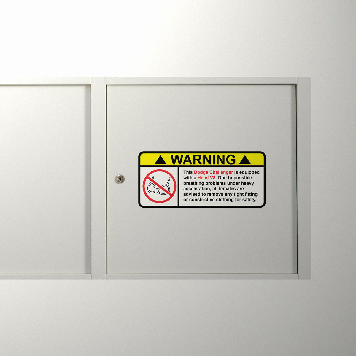 Humorous Dodge Challenger Hemi V8 Warning Sticker