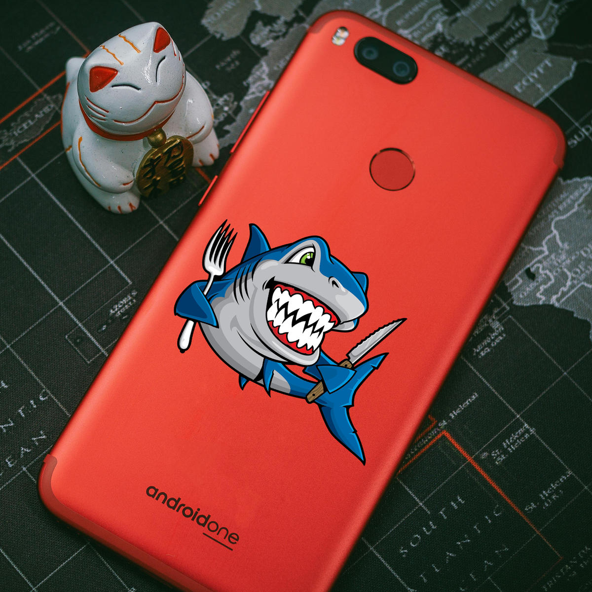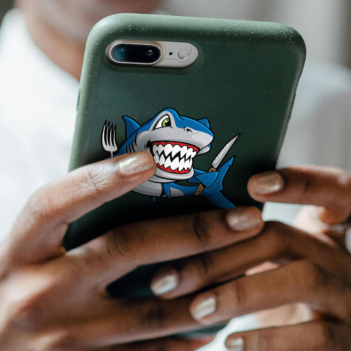 Hungry Shark Cartoon Sticker 🦈 Fun and Fearless Design: Featuring a hungry shark armed with a knife and fork, this cartoon sticker adds a playful and fierce touch to your car, laptop, or accessories. Perfect for those with a sense of humor! 🦈