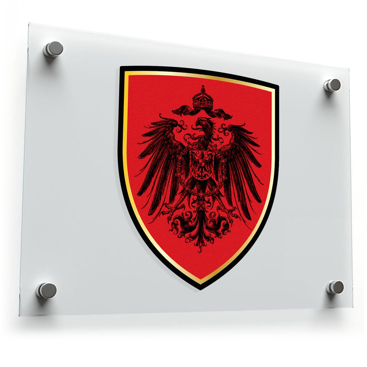 Showcase your love for regal and historic designs with this imperial eagle vinyl sticker. Featuring a majestic black eagle on a vibrant red shield with elegant gold accents, this heraldic decal brings a touch of sophistication and tradition to any space. Made from high-quality, weatherproof vinyl, it’s perfect for cars, laptops, walls, or water bottles, maintaining its vivid colors and durability indoors or outdoors. Easy to apply and remove without residue, this versatile sticker is available in multiple sizes to suit your decorative needs, from bold wall art to subtle personal touches.