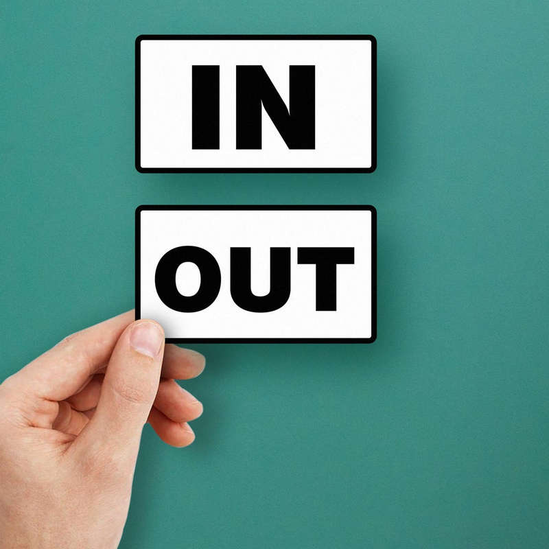 Optimize the flow of traffic with this set of “In” and “Out” directional stickers, featuring bold black lettering on a crisp white background for maximum visibility. These versatile signage decals are perfect for guiding visitors and staff in offices, retail stores, and public facilities, ensuring smooth and clear navigation. Made from durable materials, they’re built to withstand daily wear and tear while remaining vibrant and easy to read. The stickers are simple to apply and remove, offering flexibility and convenience. Available in multiple sizes to fit various locations, these decals are essential for any organized space.