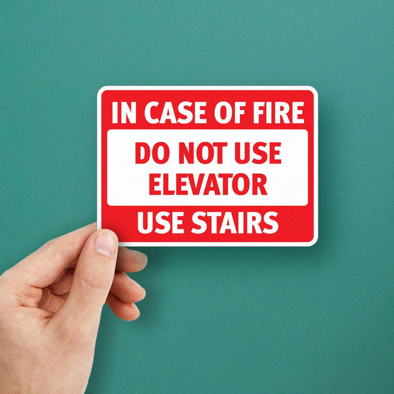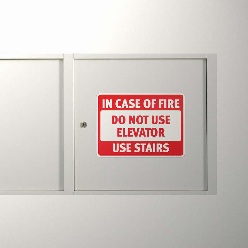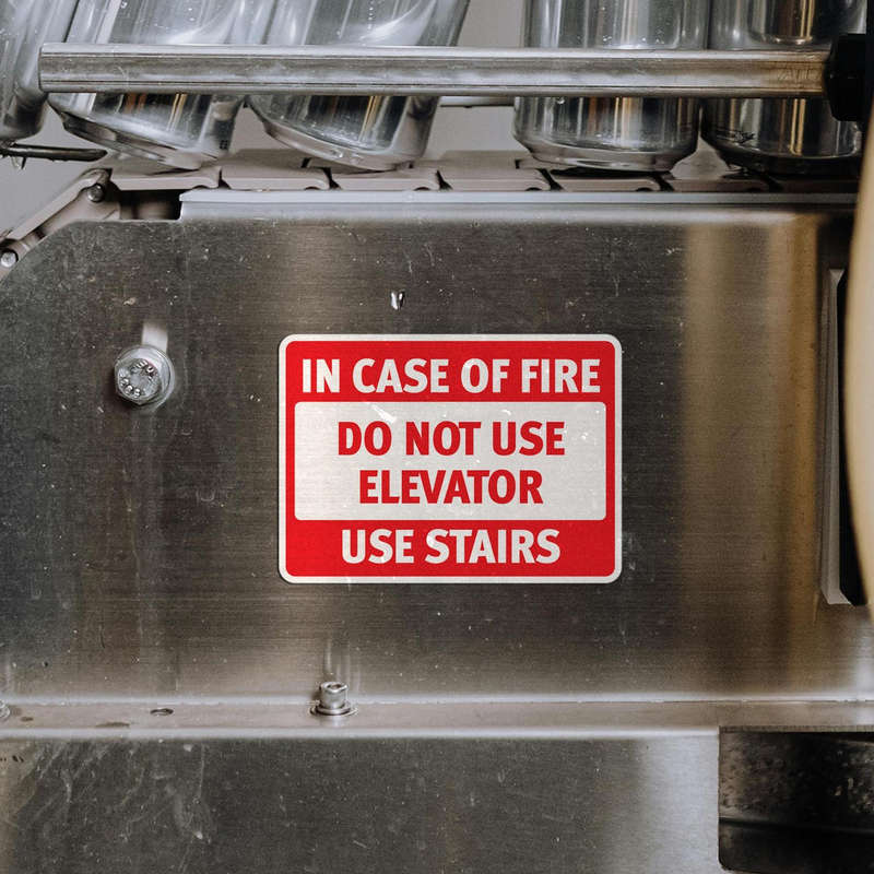 Enhance emergency preparedness in your building with this In Case of Fire Use Stairs Sticker. This high-visibility decal features bold red and white text that delivers clear instructions, reminding occupants to avoid elevators and use stairs during fire emergencies. Made from durable vinyl, this sticker is ideal for indoor and outdoor use, ensuring that it remains visible and legible over time. Suitable for elevators, lobbies, stairwells, and emergency exits, this easy-to-apply sticker reinforces safety protocols and promotes quick, informed action during emergencies. Available in multiple sizes for versatile placement.