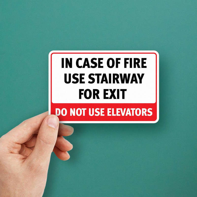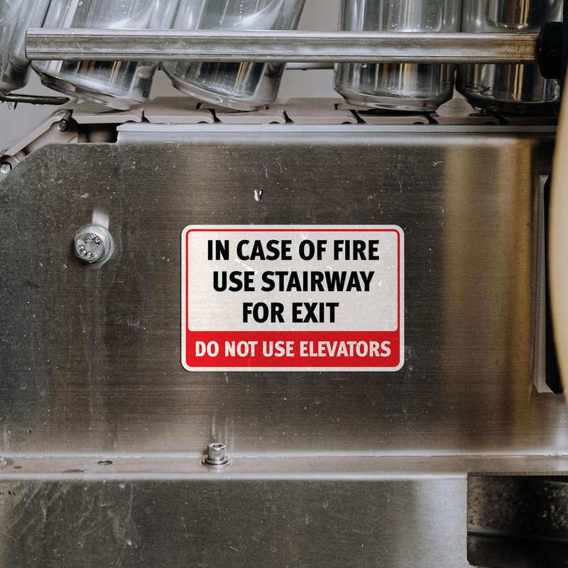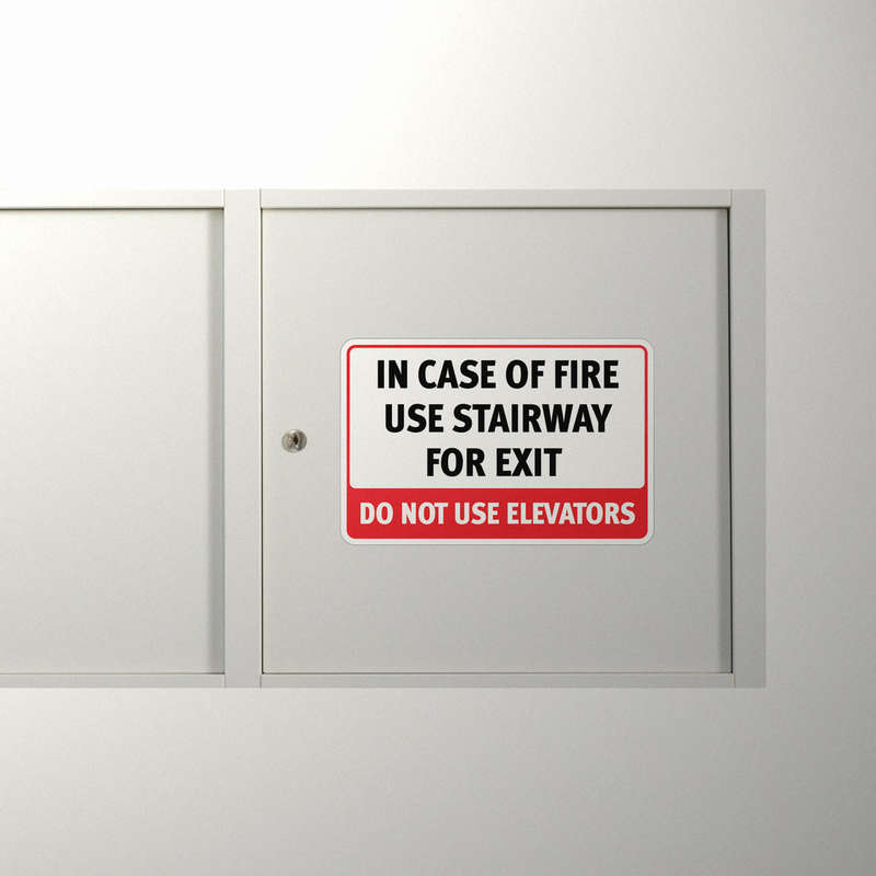 Promote safety and effective evacuation with this “In Case of Fire Use Stairway” sticker, designed to remind individuals to avoid elevators in emergency situations. Displayed in a bold red and white color scheme with large, clear text, this durable vinyl decal is ideal for building exits, hallways, and stairwells. Made from high-quality vinyl, it withstands high-traffic areas and retains visibility over time. The sticker’s residue-free removal feature allows for adaptable placement, making it suitable for evolving safety needs. Available in multiple sizes, this safety sign is essential for buildings prioritizing fire safety.