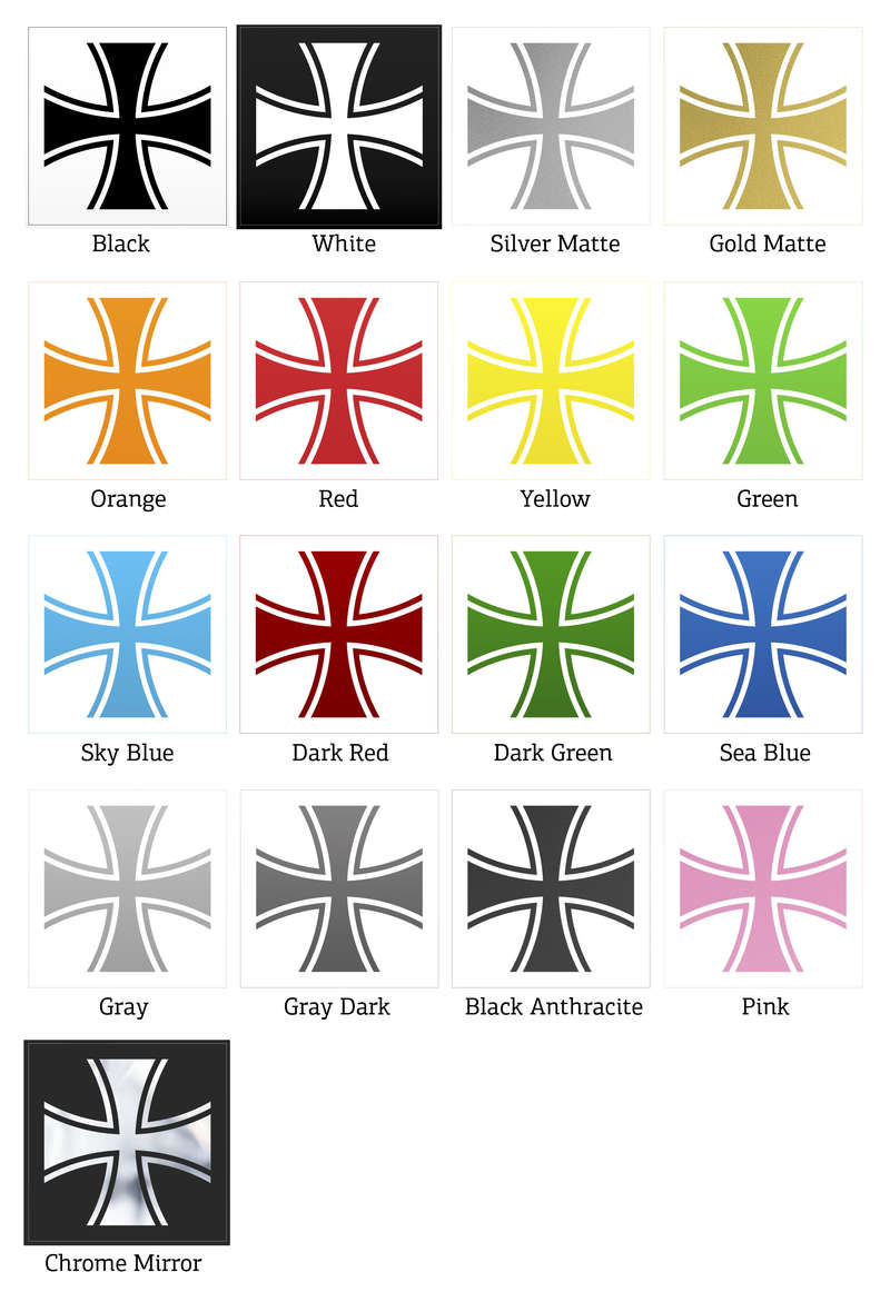 Add a bold and iconic touch to your belongings with this Iron Cross vinyl sticker. Featuring a sleek black design, this classic symbol is perfect for decorating cars, laptops, walls, or other flat surfaces. Crafted from durable and waterproof vinyl, it is fade-resistant and scratch-proof, making it suitable for both indoor and outdoor applications. The easy peel-and-stick application allows you to personalize your space or items without hassle or residue. Available in multiple sizes, this timeless decal brings a touch of gothic elegance or minimalist style to any surface.