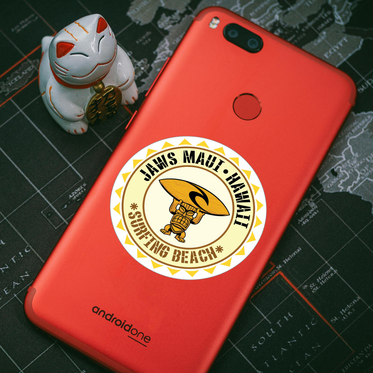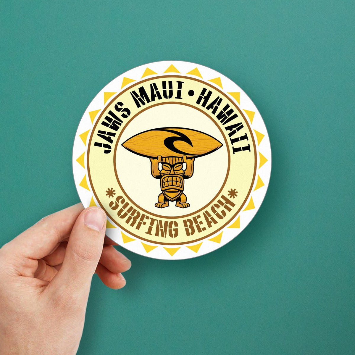 Bring the spirit of Maui’s famous surfing beaches to your belongings with this vibrant Jaws Maui Hawaii Surfing Beach Sticker. Crafted from durable, weather-resistant vinyl, this sticker is perfect for outdoor use on cars, laptops, or water sports gear. Its easy-to-apply, peel-and-stick design ensures hassle-free application, and the iconic tiki figure holding a surfboard adds a fun, tropical touch to your personal items. Available in multiple sizes, this sticker is an excellent way to show your love for surf culture and the Hawaiian lifestyle.
