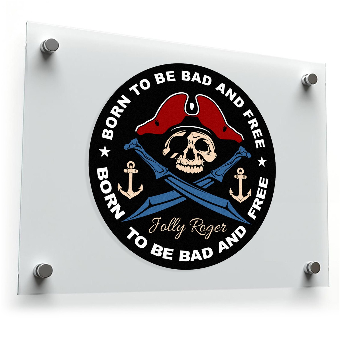 ⚓ Eye-Catching Design: The circular black background highlights the detailed skull and anchors, while the text “Born to Be Bad and Free” adds an empowering, adventurous touch. ⚓