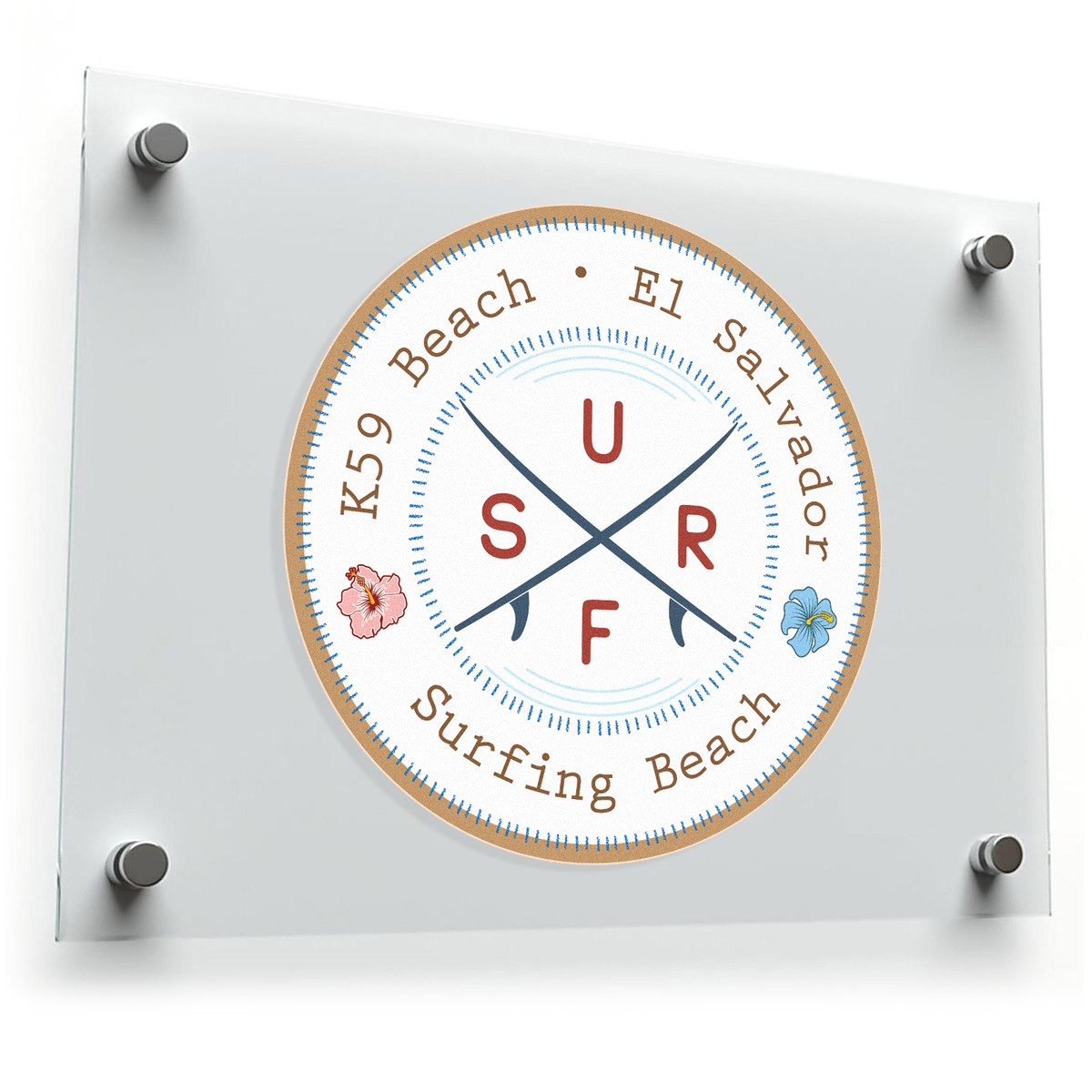 Capture the adventurous spirit of El Salvador’s K59 Beach with this bold surfing decal. Featuring a round design with a crossed-surfboard motif, tropical floral accents, and bold “SURF” typography, this vinyl sticker is perfect for decorating laptops, car windows, or surfboards. Made from durable, weather-resistant vinyl, it maintains its vibrant colors and sharp details indoors and outdoors. Whether you’re a surfer, traveler, or beach lover, this sticker is a stylish reminder of K59’s world-famous waves and tropical charm. Available in multiple sizes, it’s also a great gift for ocean enthusiasts and adventurers.