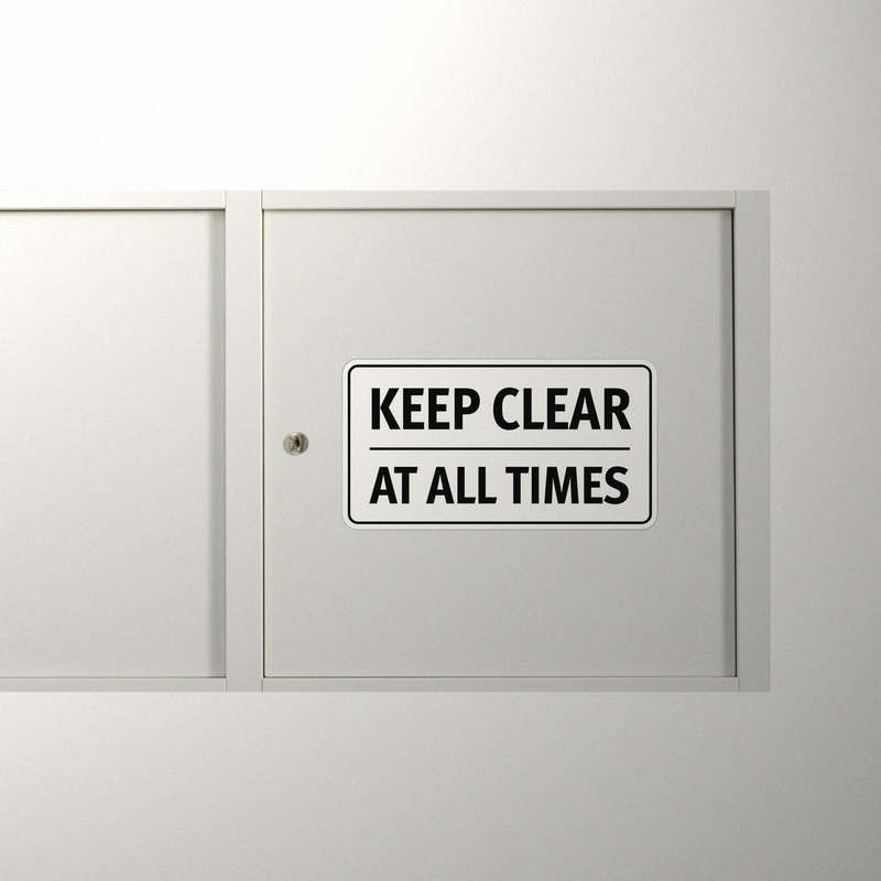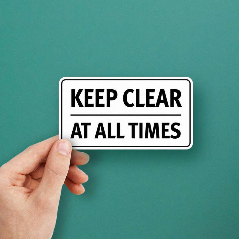 Ensure safety and accessibility with this durable “Keep Clear at All Times” sticker. Featuring bold black text on a bright white background, this decal offers high visibility, effectively communicating the need to maintain obstruction-free pathways. Constructed from long-lasting vinyl, it resists wear and tear, making it suitable for both indoor and outdoor use. Easy to apply on various surfaces, including metal, glass, and plastic, it provides a seamless and bubble-free installation process. Perfect for workplaces, parking lots, or public spaces, this safety sticker is available in multiple sizes to meet your specific needs, promoting safety compliance and efficient traffic flow.