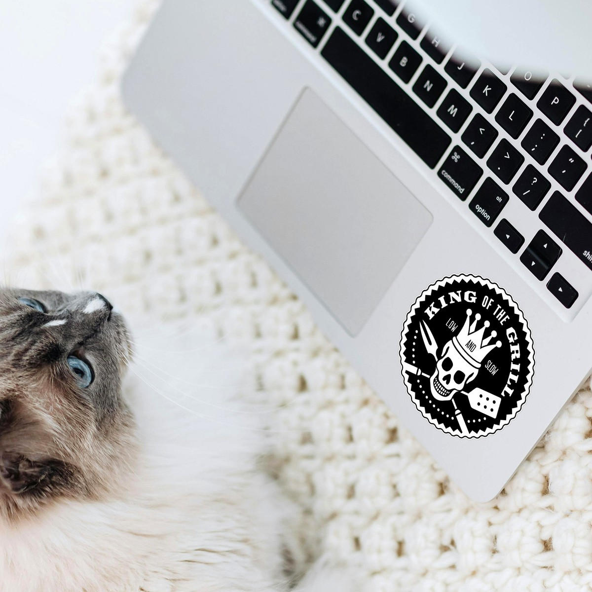 Let everyone know who rules the BBQ with this “King of the Grill” vinyl sticker. Featuring a bold skull and crown design, this sticker is perfect for grillmasters who want to add a touch of attitude to their BBQ setup. Made from durable, weatherproof vinyl, this decal is built to last through countless grilling sessions, whether applied to your grill, smoker, or cooler. The easy-to-apply adhesive backing ensures a smooth finish, while allowing for easy removal without any sticky residue. Available in multiple sizes and sold in a 5-pack, this sticker is perfect for personalizing all your grilling essentials.