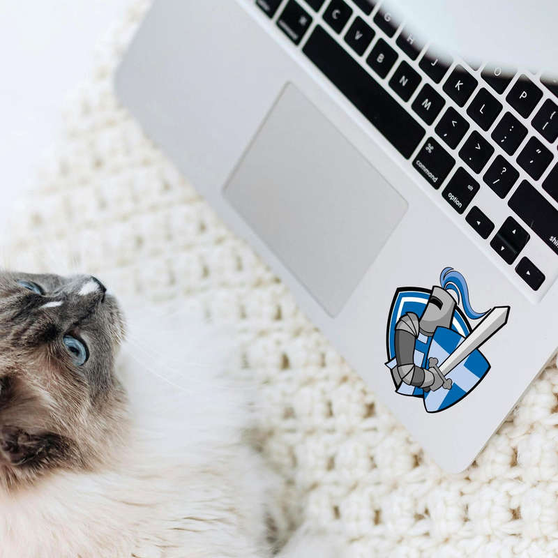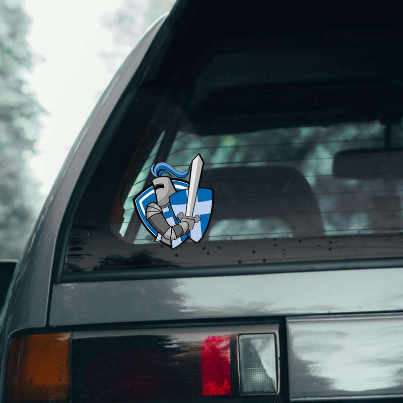 Showcase your love for medieval history with this bold knight decal. Featuring a fully-armored knight wielding a sword and shield, this blue and gray vinyl sticker adds a dynamic touch to your car, laptop, or wall. Designed for durability, it can withstand outdoor conditions while maintaining its vibrant colors. This decal is easy to apply and remove without leaving any residue, making it ideal for both temporary and long-term use. Whether you’re a fan of medieval themes or simply want to personalize your belongings, this knight decal offers a stylish and powerful way to showcase your interests. Available in multiple size options.