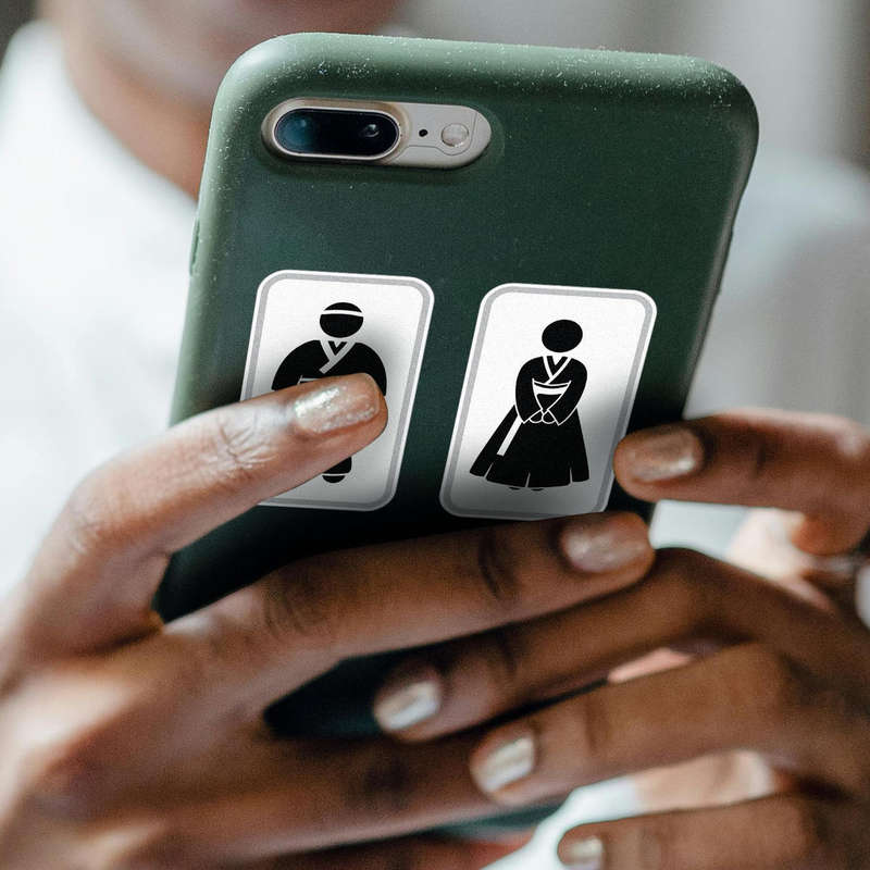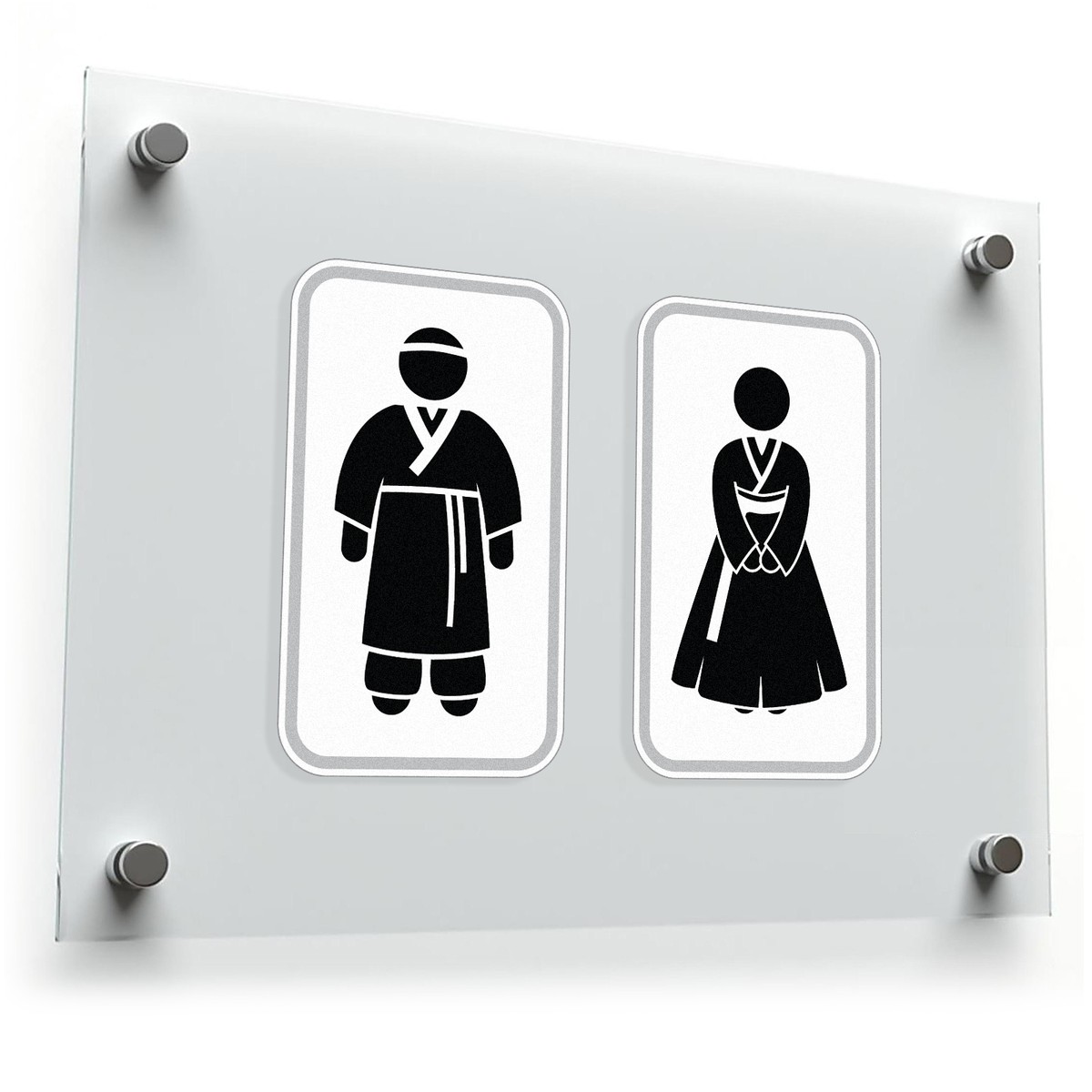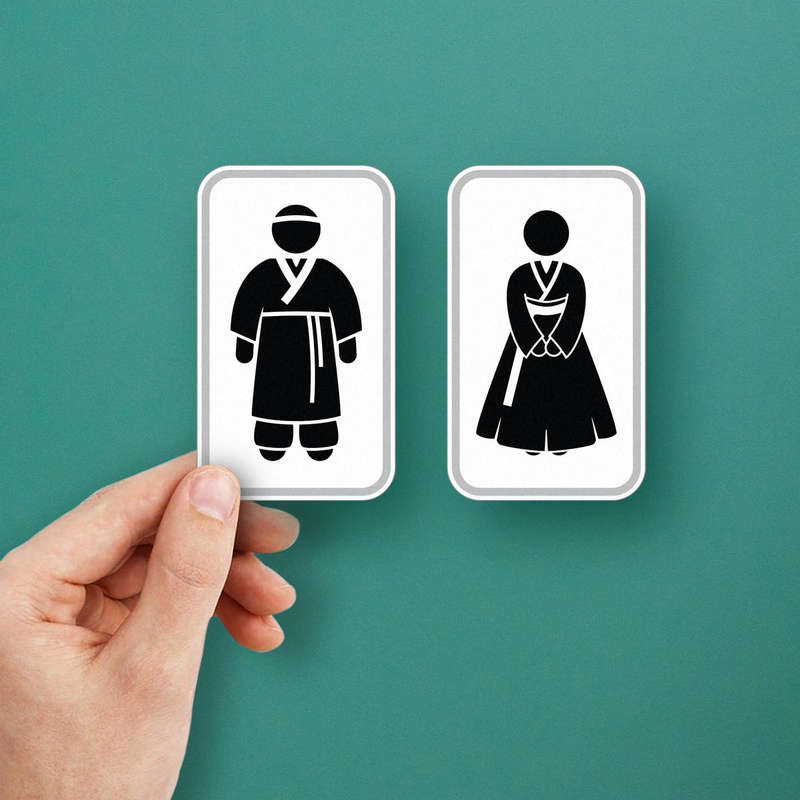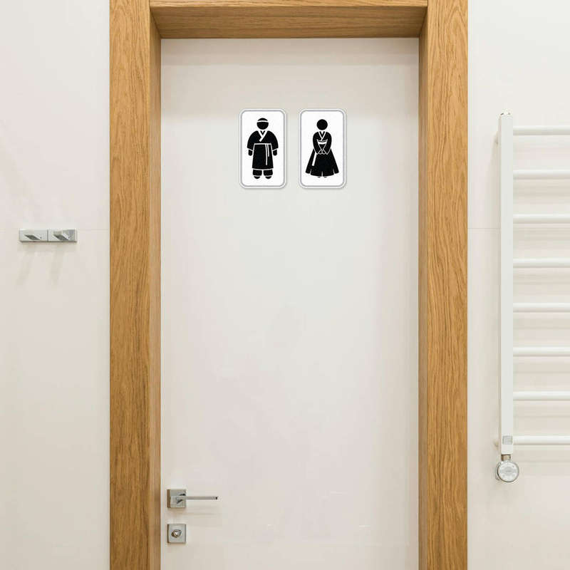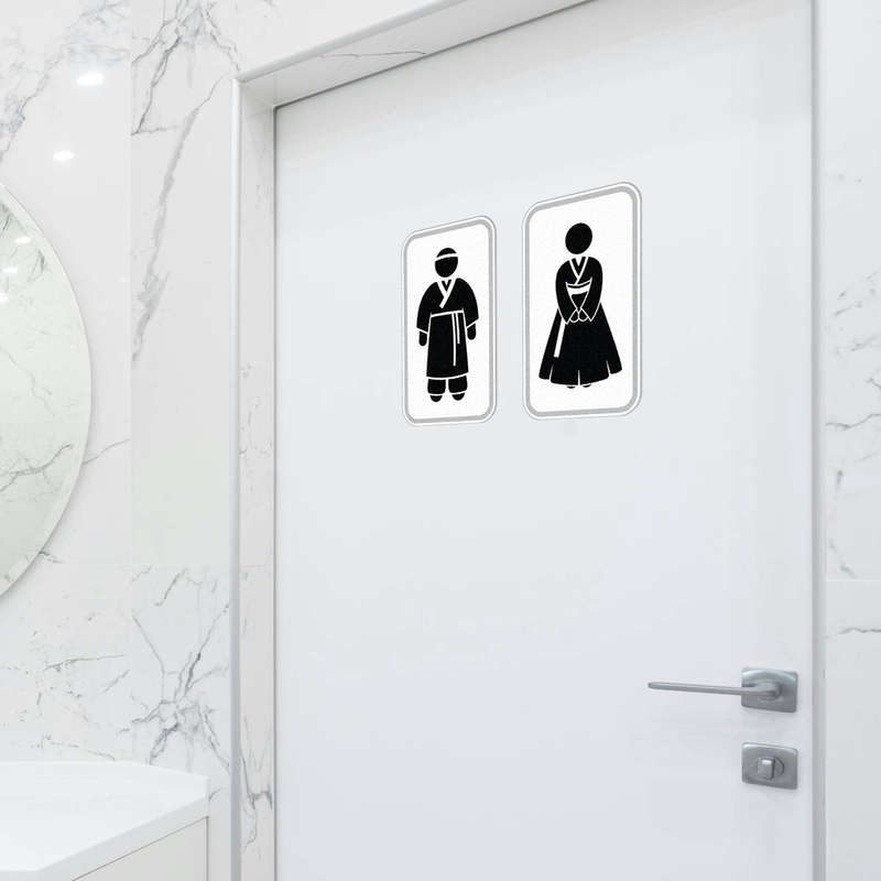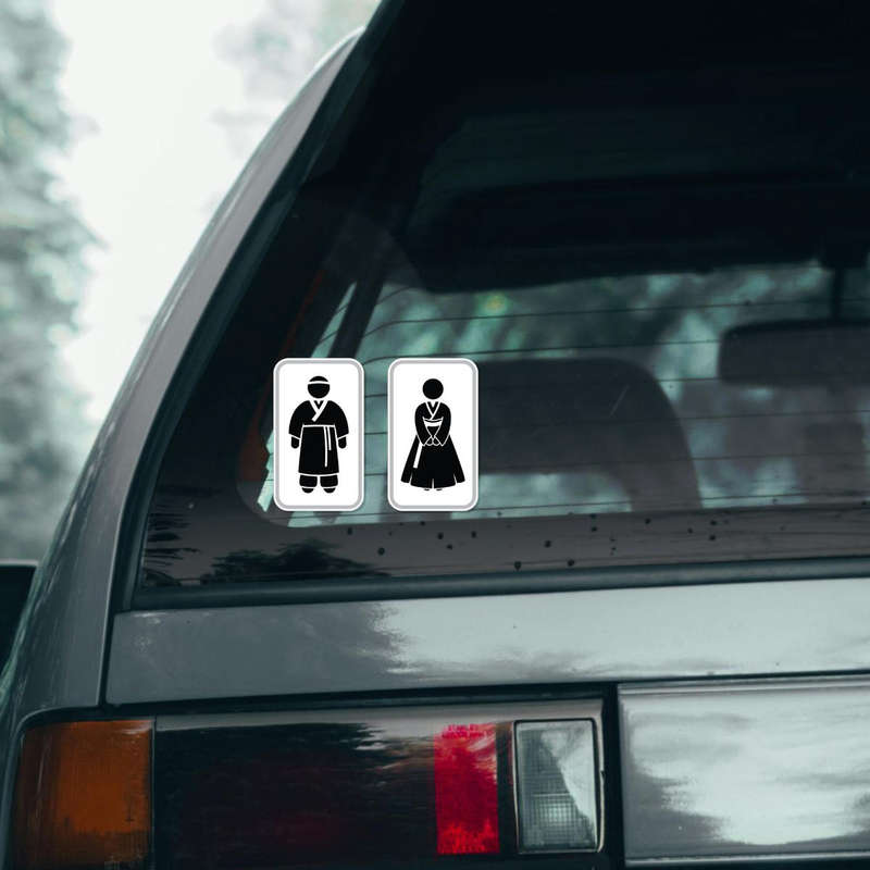 Upgrade your restroom signage with the Korean Restroom Sign Vinyl Sticker. Featuring minimalist male and female silhouettes in traditional hanbok attire, this black decal is both functional and stylish. Its matte finish provides a polished, non-glare appearance that ensures visibility in any lighting. Made from high-quality vinyl, this sticker is durable and designed to withstand wear, making it ideal for bathroom doors in homes, offices, or public spaces. Easy to apply and remove without residue, this sticker adds a cultural and professional touch to your lavatory or restroom signage. Available in multiple sizes for various applications.