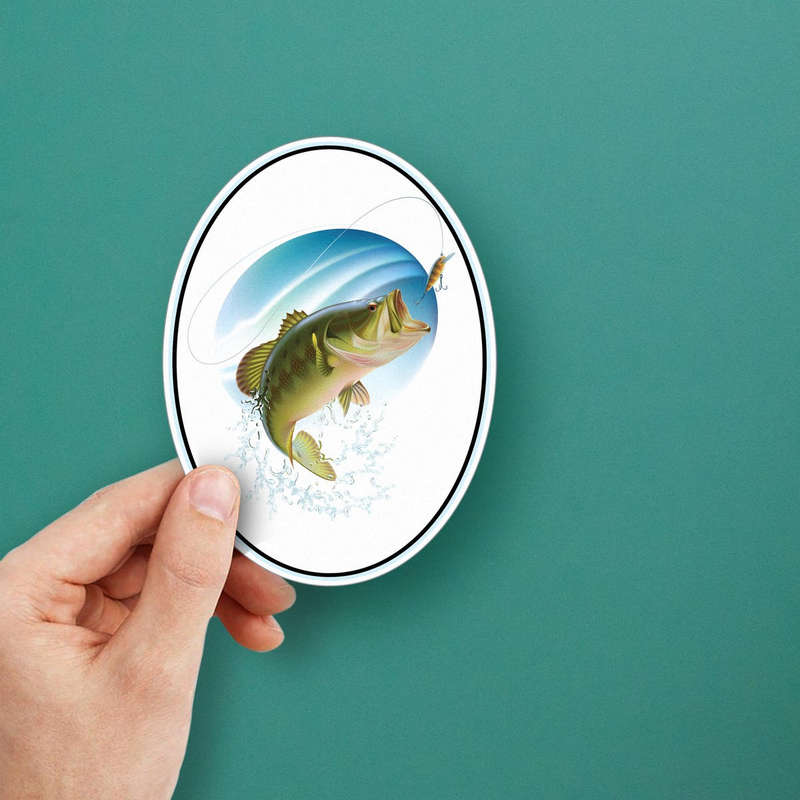 Show off your passion for fishing with this vibrant largemouth bass sticker. Featuring a dynamic oval design, it captures the thrilling moment of a bass striking a lure, perfect for fishing enthusiasts. This durable vinyl decal is ideal for decorating boats, tackle boxes, cars, and more, offering a stylish way to personalize your gear. Its high-quality construction ensures resistance to fading, peeling, and weather damage, making it suitable for all your outdoor adventures. Easy to apply and remove, this sticker is available in multiple size options, making it a versatile addition to your collection or a great gift for fellow anglers.