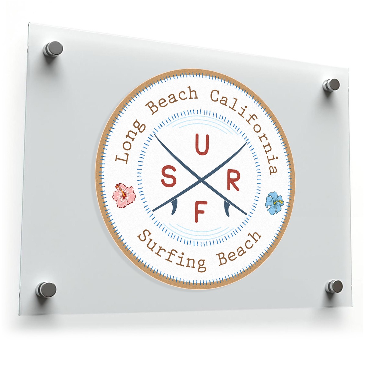 Capture the laid-back surf culture of Long Beach, California, with this stylish retro surfing beach sticker. Featuring crossed surfboards, bold typography, and hibiscus flowers, this decal combines tropical charm with a touch of California cool. Its durable vinyl construction resists fading and wear, making it perfect for both indoor and outdoor use on laptops, cars, walls, or surfboards. Easy to apply and remove without residue, this sticker is renter-friendly and great for frequent decorators. Available in multiple size options, it’s a versatile and timeless way to showcase your love for Long Beach and its vibrant surfing lifestyle.