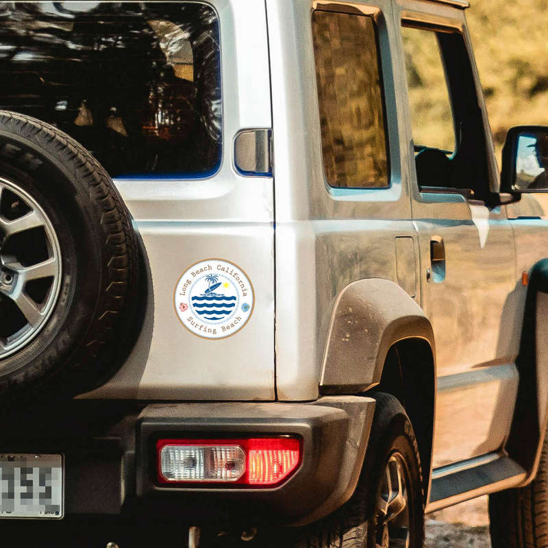 Capture the laid-back vibes of Long Beach, California, with this tropical surfing beach vinyl sticker. Featuring a circular design with waves, surfboards, and colorful tropical accents, this decal brings the essence of the beach to your belongings. Made from high-quality vinyl, it’s built to withstand fading and wear, ensuring durability for indoor and outdoor use. Whether you’re decorating a car, laptop, or water bottle, this sticker adheres seamlessly and removes cleanly without leaving residue. Available in multiple size options, it’s the perfect accessory for anyone who loves coastal style and California’s surf culture.