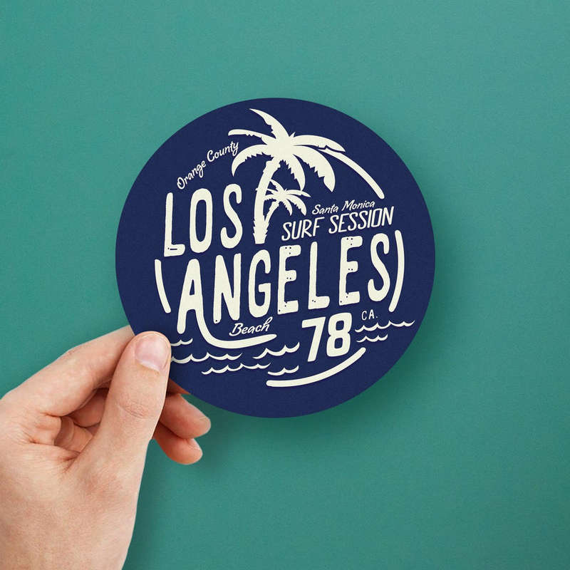Celebrate the laid-back beach culture of California with this Los Angeles Surf Session sticker. Featuring retro-style typography, palm trees, and beach waves in a bold blue and white design, this vinyl decal brings the iconic vibes of Santa Monica and Orange County to life. Ideal for laptops, cars, water bottles, and more, it’s crafted from durable vinyl to withstand outdoor elements, ensuring the vibrant colors remain fresh. Available in multiple sizes, this sticker is perfect for travel enthusiasts, surf lovers, and anyone who wants to carry a piece of LA’s beach lifestyle wherever they go.