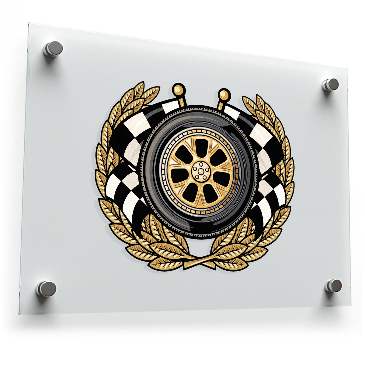 Show off your passion for racing with this luxury racing wheel sticker. Featuring a bold design with a gold and black tire emblem framed by checkered flags and laurel wreaths, this decal exudes sporty sophistication. The premium gold detailing enhances its luxurious appeal, while the durable vinyl construction ensures long-lasting vibrancy and resistance to wear. Whether youβre decorating your car, laptop, or garage toolbox, this sticker fits seamlessly into any automotive or racing-themed decor. Available in multiple size options, it allows you to customize your surfaces with precision and flair, making it the perfect blend of style and durability.